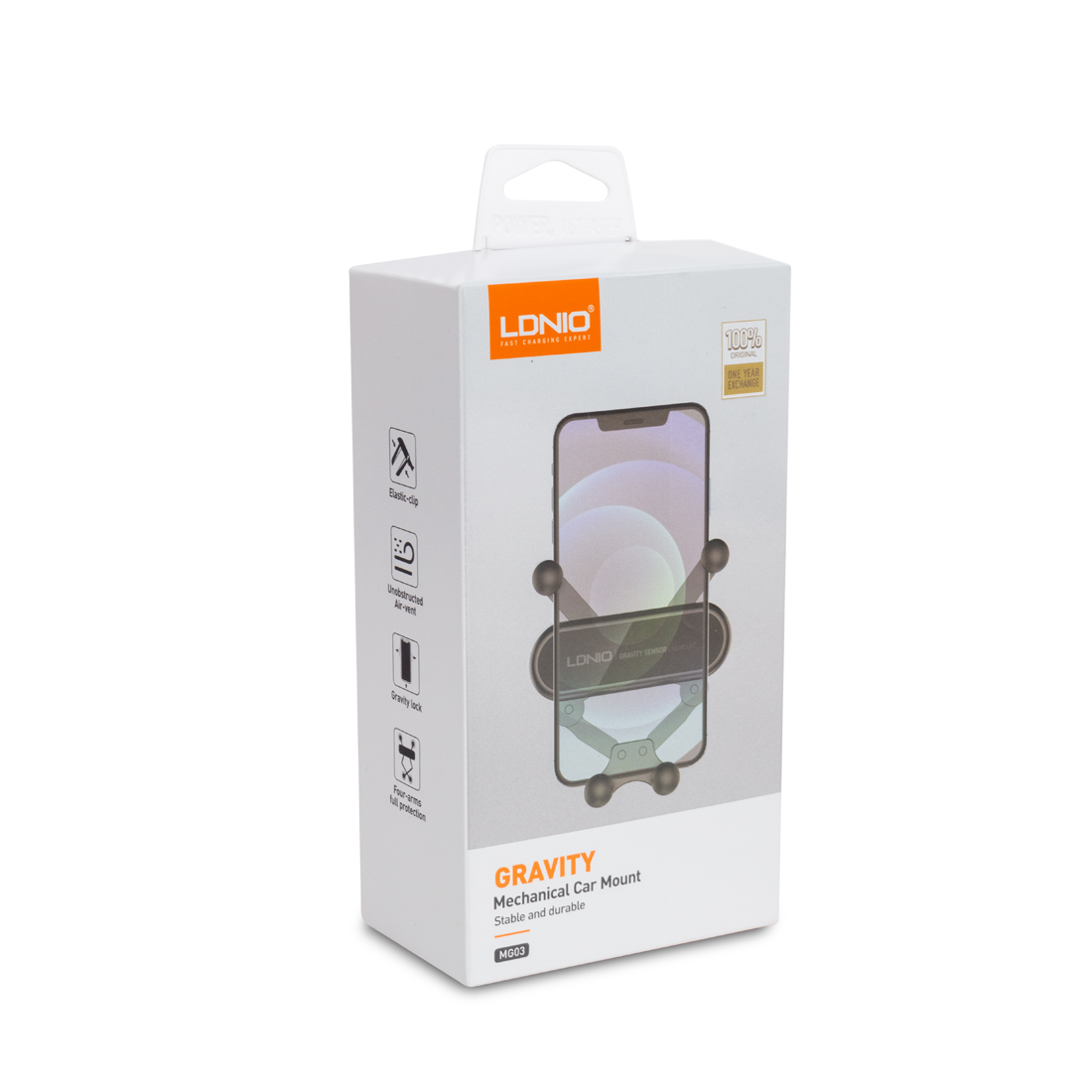 В наше время долгих пробок, простых и частых перемещением по городу или нередких дальних поездок на автомобиле постоянно держать телефон в руках крайне неудобно. На помощь приходит современный Автомобильный держатель для телефона LDNIO Gravyty MG03, Зажим Чёрного цвета отлично подойдёт к интерьеру большинства автомобилей. Корпус изготовлен из высокопрочной пластмассы.