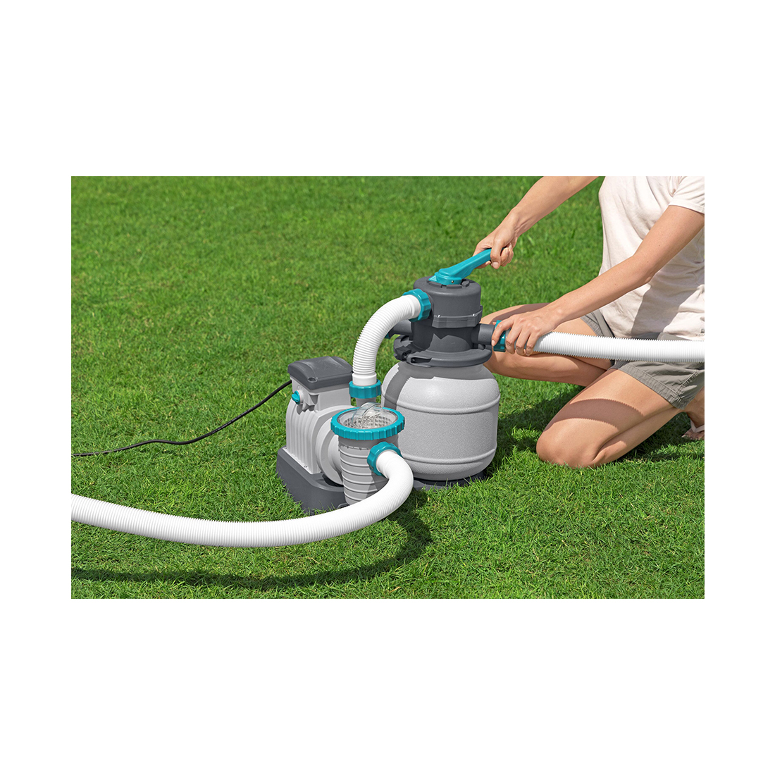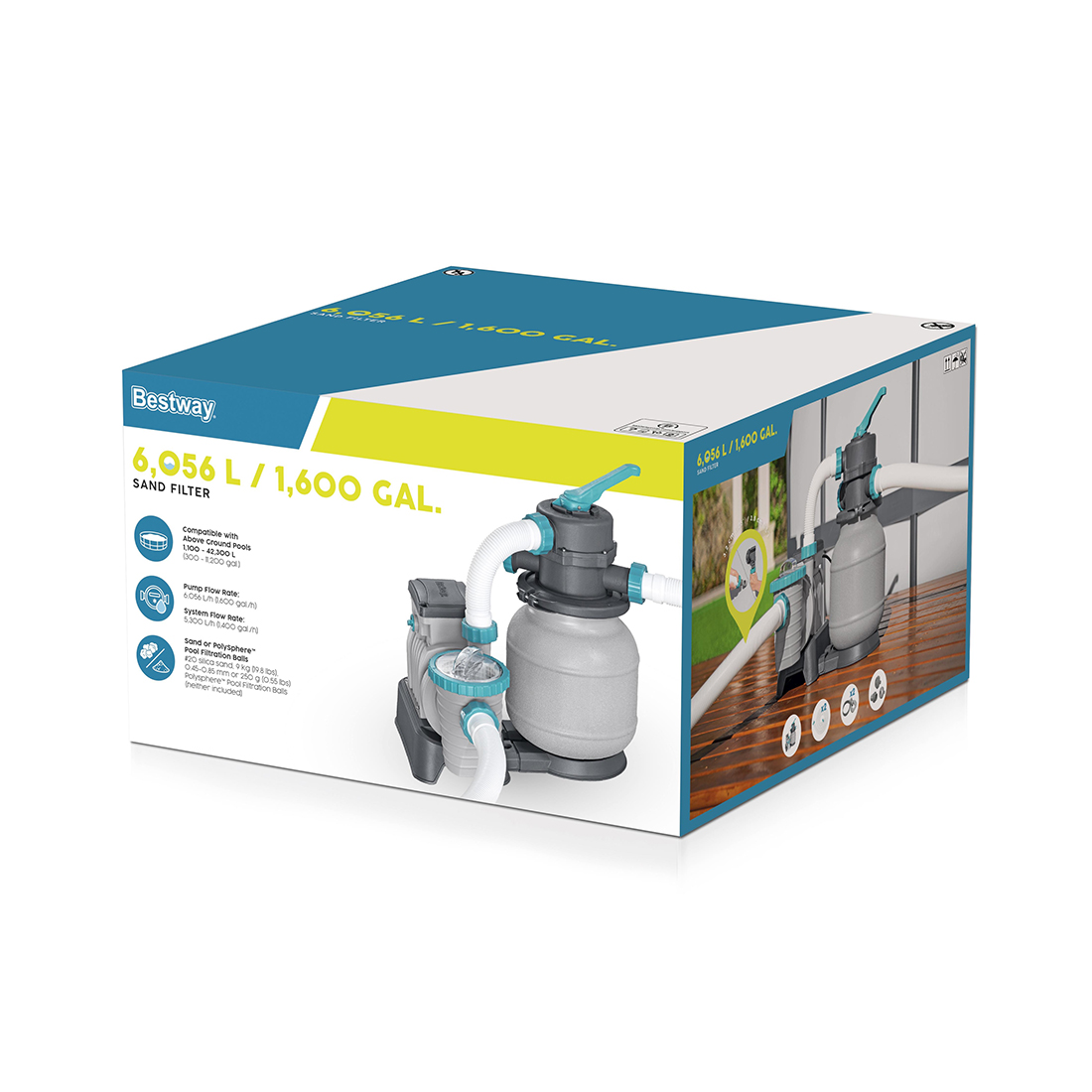 Поддерживайте кристальную чистоту воды в наземном бассейне с помощью насоса с песочным фильтром Bestway® производительностью 6056 л! Этот мощный насос работает дольше, более экологичен и требует меньшего обслуживания, чем традиционный насос с фильтрующим картриджем. Для работы насоса требуется кварцевый песок или фильтрующие шарики для бассейна Bestway Polysphere™ (ни песок, ни фильтрующие шарики в комплект не входят); в комплект насоса также входит корзина сетчатого фильтра предварительной очистки для захвата крупных частиц, что повышает эффективность и срок службы насоса. Прочный, устойчивый к коррозии насос поставляется предварительно собранным, поэтому просто подключите его к электросети и включите, чтобы увидеть улучшение фильтрации вашего бассейна. Этот насос с песочным фильтром совместим с наземными бассейнами объемом 1100–42 300 л (300–