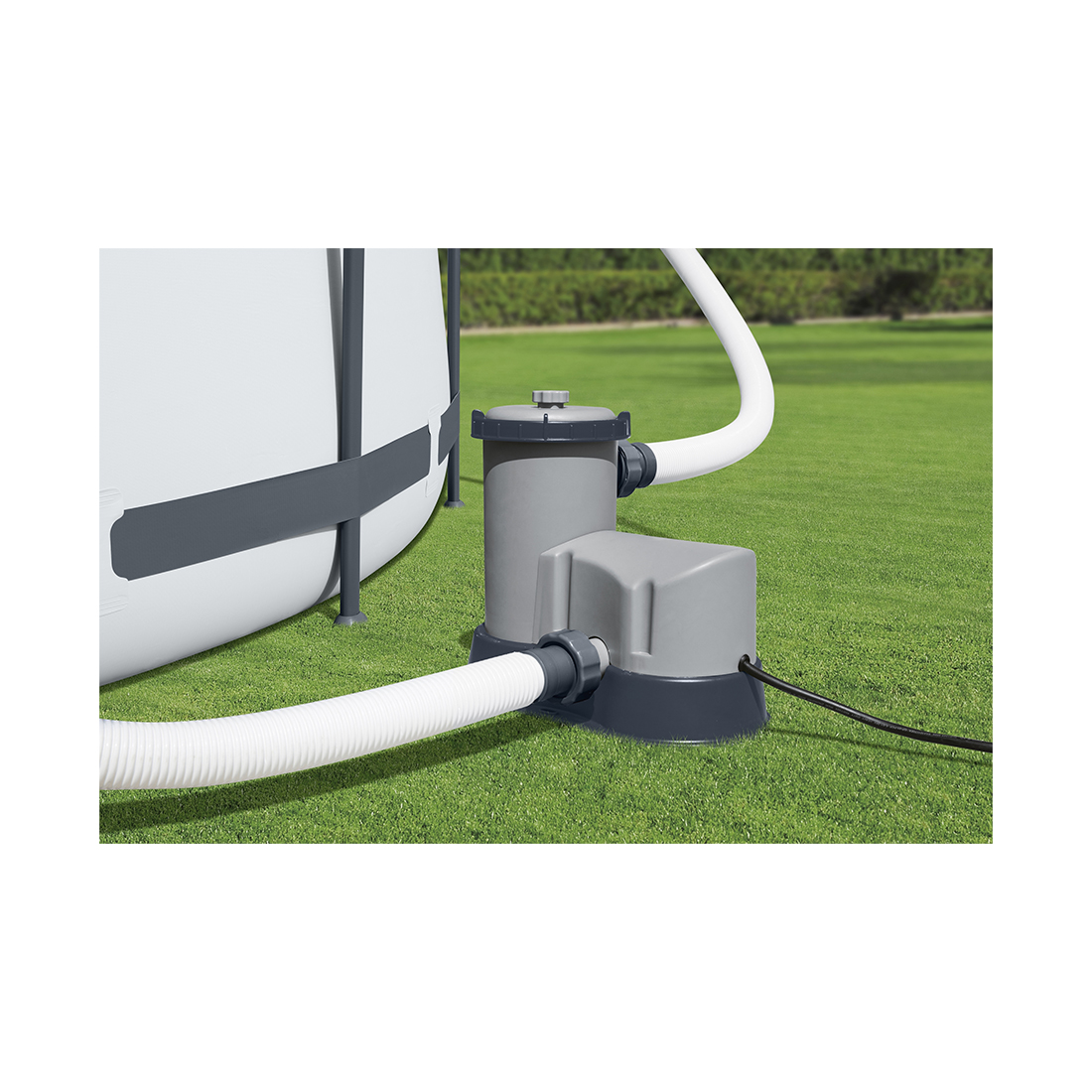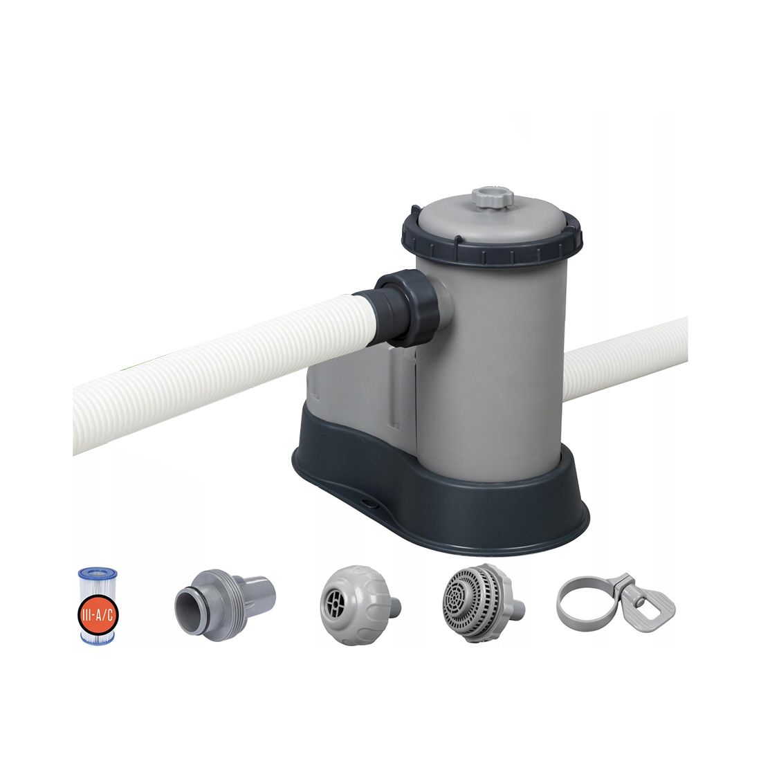 Фильтрующий картриджный насос, предназначен для очистки воды от загрязнения путем фильтрации. Производительность данной модели обеспечивает соответствие чистоты воды гигиеническим нормам в бассейнах большого объема. Фильтр-насос подключается к штатным отверстиям бассейна при помощи двух гофрированных шлангов. В комплект поставки входит 1 картридж типа III.