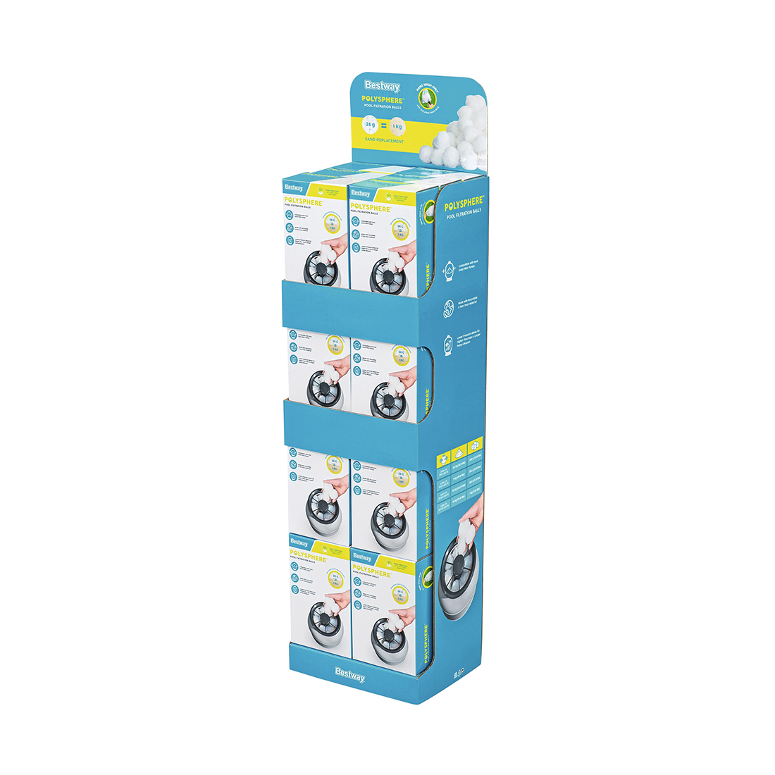 Придайте своему бассейну экологически чистый импульс! Фильтрующие шарики для бассейна Bestway® Polysphere™ – это высокоэффективный и экологически чистый способ поддерживать чистоту воды в наземном бассейне без лишних отходов. Фильтрующие шарики Polysphere являются многоразовой заменой песка в традиционных песочных фильтрах. Для получения фильтрующей способности 1 кг (2,2 фунта) песка требуется всего 28 г (0,06 фунта) фильтрующих шариков! Изготовленные из пригодного для вторичной переработки и нетоксичного материала, эти хлопкоподобные фильтрующие шарики могут прослужить 4-6 месяцев при надлежащем уходе. Просто поместите их во входящий в комплект сетчатый мешочек и легко промойте вручную для следующего использования. Кроме того, они повышают эффективность песочного насоса, требуя меньшего давления, что обеспечивает более высокую скорость потока и более длительный срок службы бассейна и фильтра для бассейна. Улучшите процедуру ухода за бассейном и попробуйте экологически чистое дополнение.