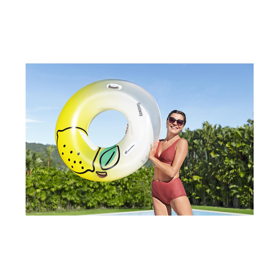 В комплект входят: 1 надувной круг для плавания, ремонтная заплата