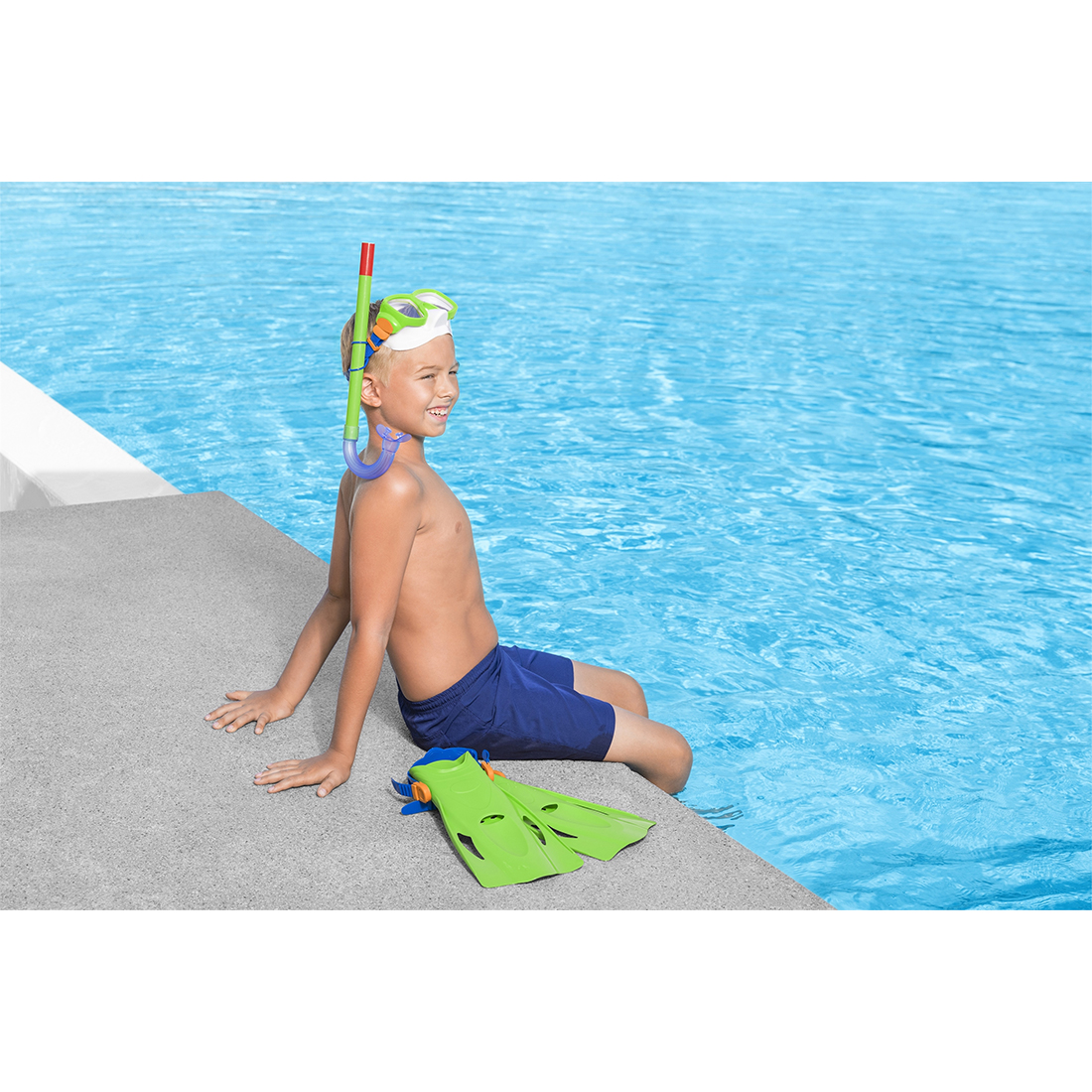 Комплект для сноркелинга Bestway® Explora Essential™ позволит детям воплотить свою страсть к приключениям! Комплект Explora Essential, предназначенный для детей старше 7 лет, идеально подходит для плавания по поверхности океана, купания, прыжков и плескания в бассейне. Этот забавный красочный комплект включает маску, трубку и ласты.