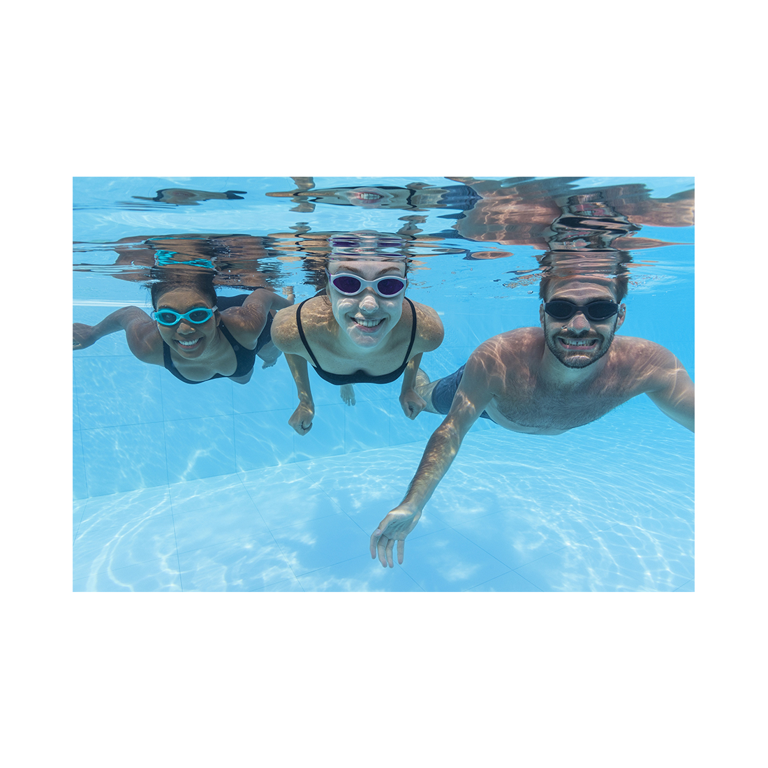 Очки защитят ваши глаза от вредных ультрафиолетовых лучей и при этом позволят четко видеть под водой благодаря нанесенному на линзы очков специальному покрытию, защищающему от ультрафиолетовых лучей. Кроме того, линзы изготовлены из прочного поликарбонатного материала, поэтому они ударопрочны и способны выдерживать причиняемые ударные воздействия, когда вы прыгаете, ныряете, плещетесь или бросаете очки в сумку или на площадку перед бассейном.
