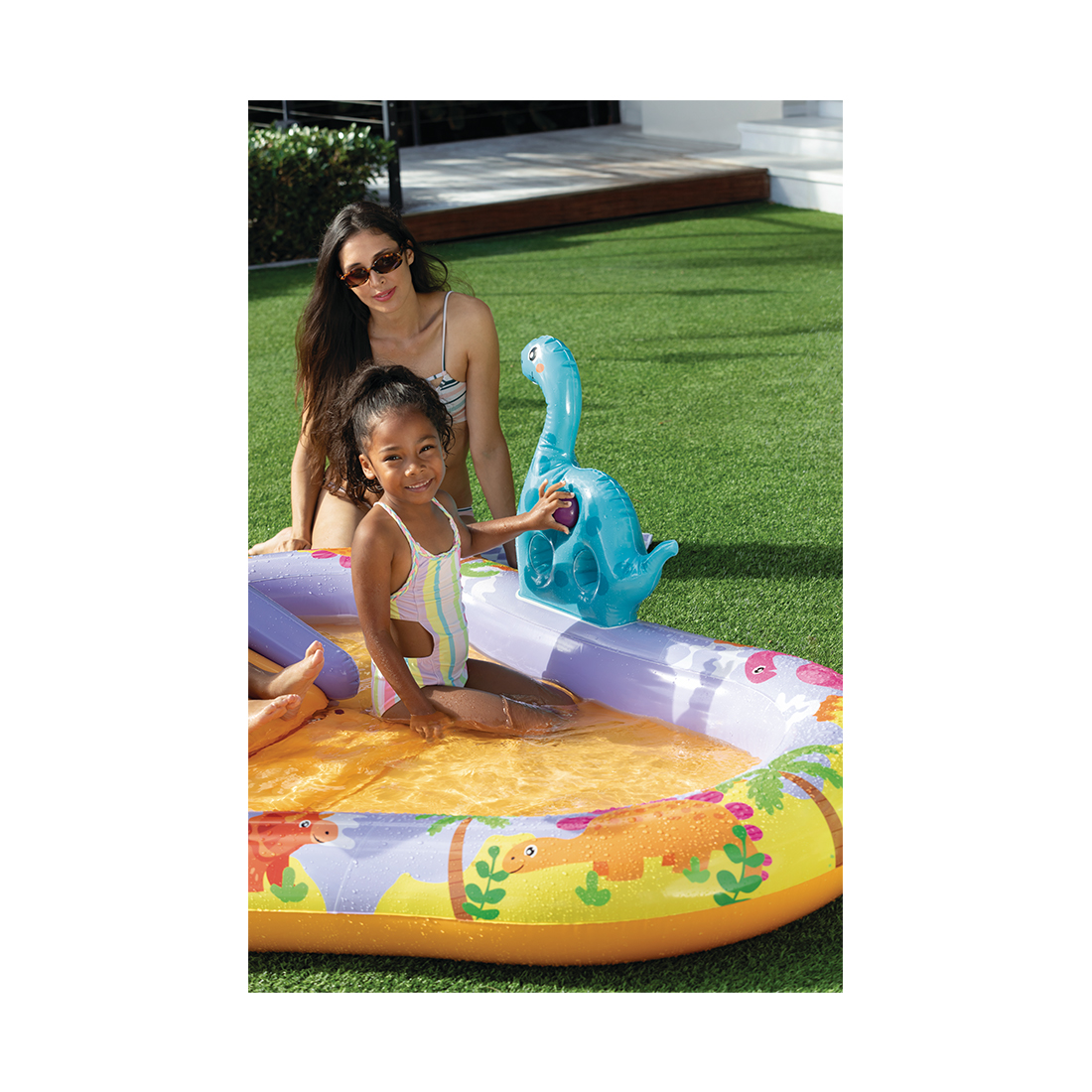 Надувной игровой центр Intex Dino Park (56139)– отличный подарок малышам от Intex. Игровой центр представляет собой игровой комплекс для детей. Имеется распылитель. Может использоваться как для воды, так и в качестве сухого бассейна. Изготовлен из высококачественного материала, устойчив, надежен и безопасен. Легко надувается и устанавливается на любой ровной поверхности. На холодное время года не рекомендуем оставлять на открытом воздухе.