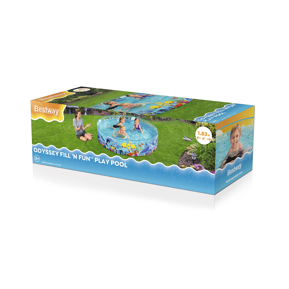 Наполните лето вашего ребенка веселыми водными исследованиями с игровым бассейном H2OGO! Odyssey Fill 'N Fun™! Этот бассейн, предназначенный для детей в возрасте от 2 лет и старше, украшен красочными рисунками подводной жизни на внешней стенке. Жесткая боковая стенка из износостойкого ПВХ наглухо прикреплена к прочному виниловому дну бассейна, поэтому никакое надувание не требуется, а установка бассейна простая и быстрая. Имея размеры 1,83 м на 38 см и емкость 946 л (250 галлонов) воды, бассейн предлагает много места для детей, чтобы плескаться и играть с друзьями. Итак, погрузитесь в веселье и сделайте это лето ярким с игровым бассейном H2OGO! Odyssey Fill 'N Fun.