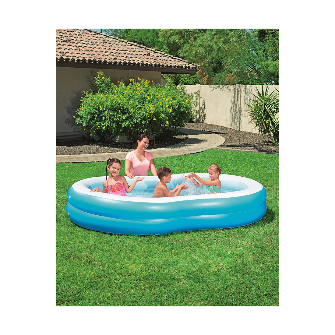 Овальный семейный надувной бассейн Bestway для взрослых и детей от 3 лет. Изготовлен из высококачественного винила, устойчивый, надежный и безопасный. Имеет мягкие стенки с широкими бортиками и жесткое дно из винила.