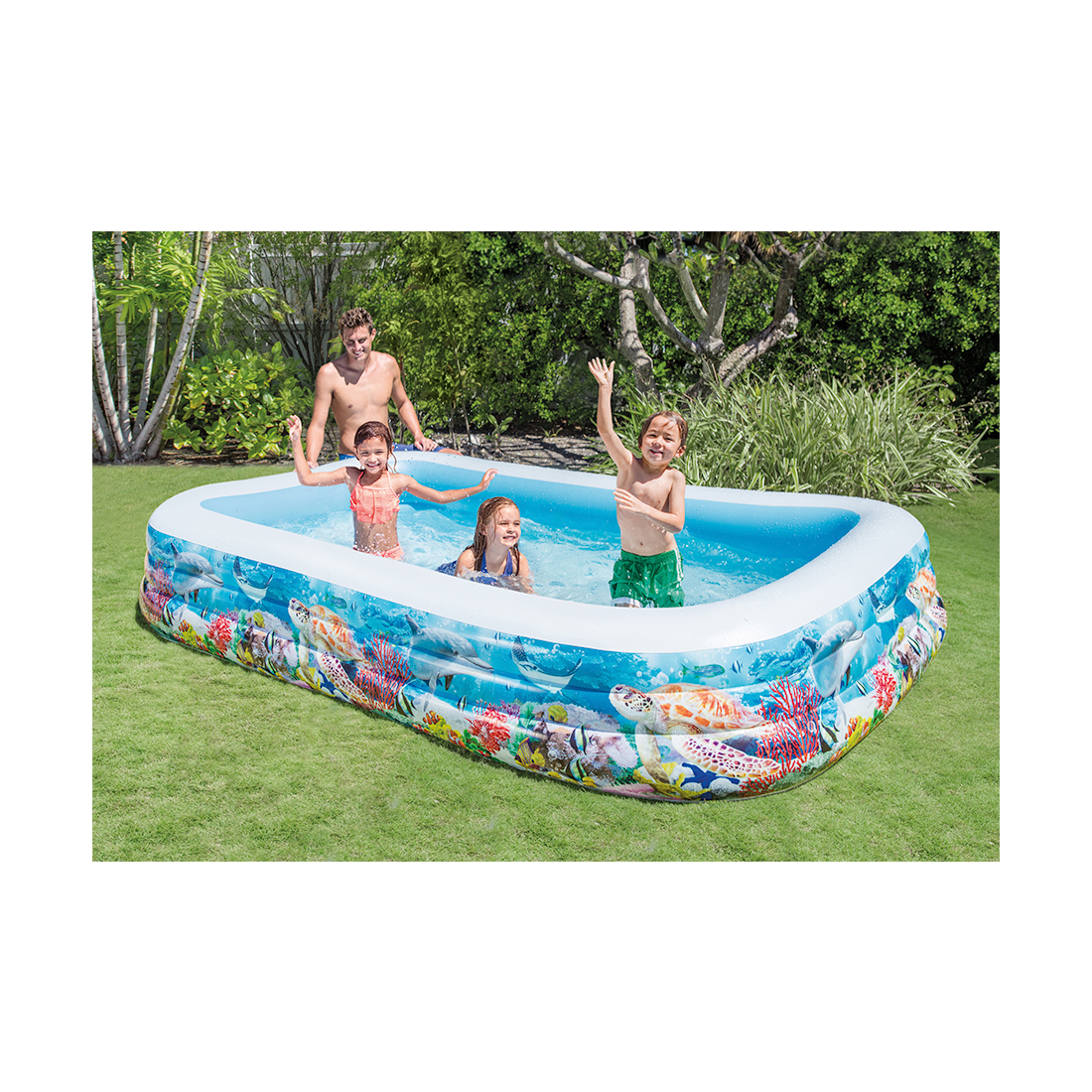 Удобный прямоугольный бассейн Intex представляет собой превосходное место для отдыха всей семьёй в жаркую, сухую, летнюю погоду. Он удобен в использовании, надув бассейн один раз - Вы сможете пользоваться им весь сезон, изредка меняя воду. Что делать тоже легко - имеется специальный клапан для слива. В нем могут купаться несколько детей и взрослых одновременно.