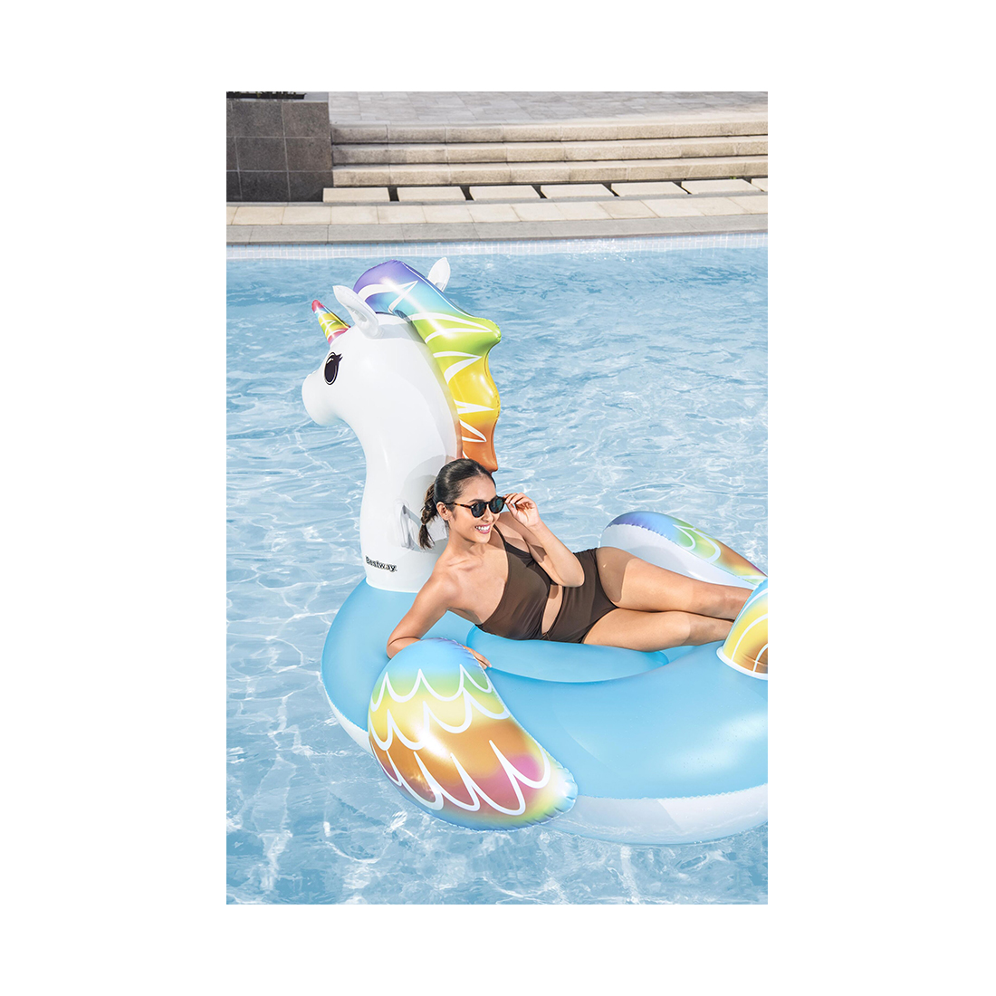 Приготовьтесь к волшебному лету с плотиком для бассейна Bestway® «Гигантский единорог». Этот огромный плотик в форме единорога и высотой более 2,24 метра, отличающийся яркими, вдохновленными радугой расцветками и шеей, которую так и хочется обнять, позволит часами веселиться на солнце. Отлично подходит для 1-го взрослого. Вы сможете держаться за прочные ручки и легко взбираться на плотик, когда захотите отправиться в сказочное путешествие. Единорог легко надувается, сдувается и хранится, поэтому вы можете наслаждаться им в течение многих сезонов. Возьмите плотик Bestway «Гигантский единорог» с собой в лето веселья и фантазий!