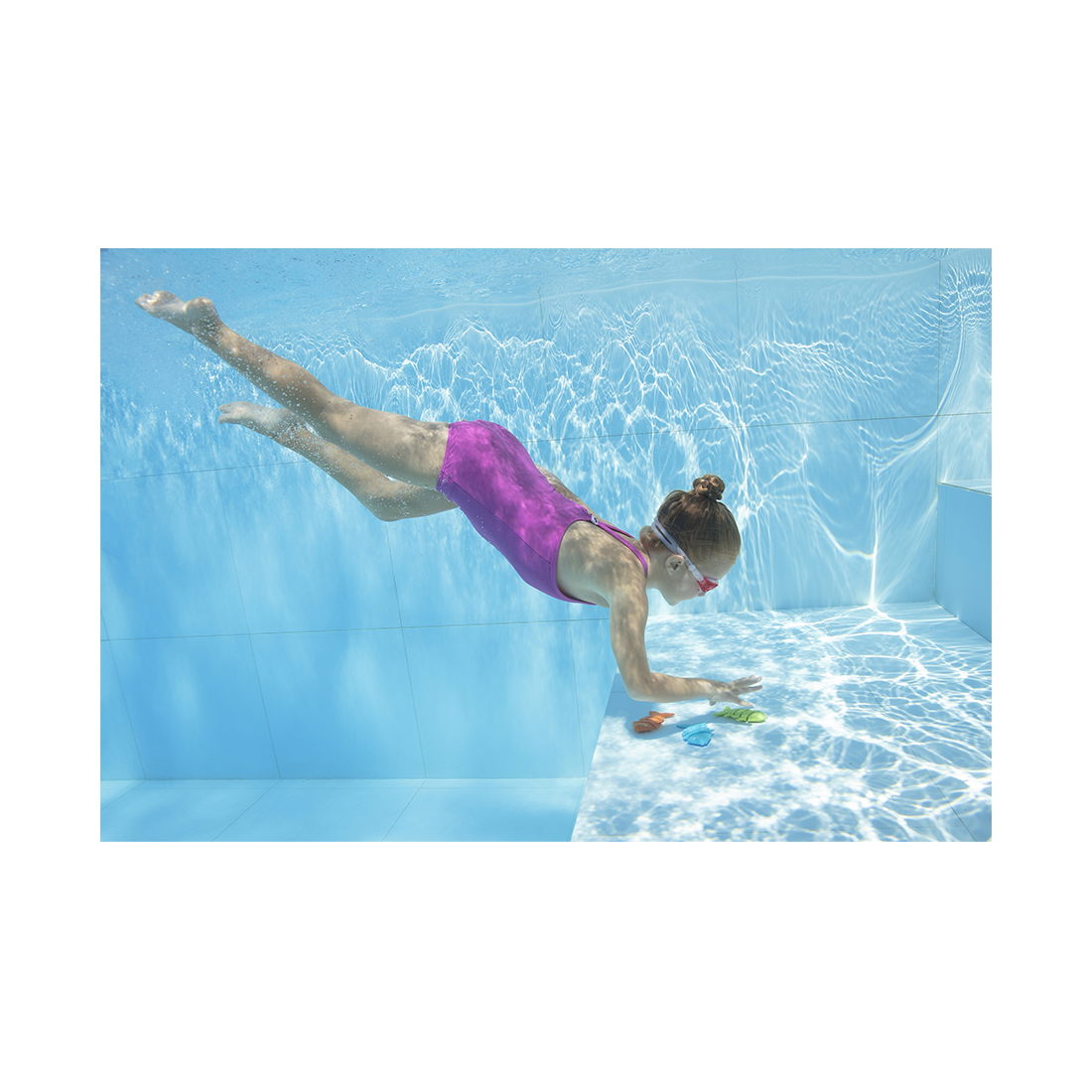 Веселые разноцветные рыбки в наборе для плавания будут сопровождать ребенка во время игр в бассейне или в природном водоеме. Юные ныряльщики смогут находить рыбок на дне, тренируя навык пребывания в воде. Тренеры рекомендуют использовать игрушки для подводного плавания, чтобы дети не боялись нырять и плавать под водой. В набор входят три разноцветные рыбки.