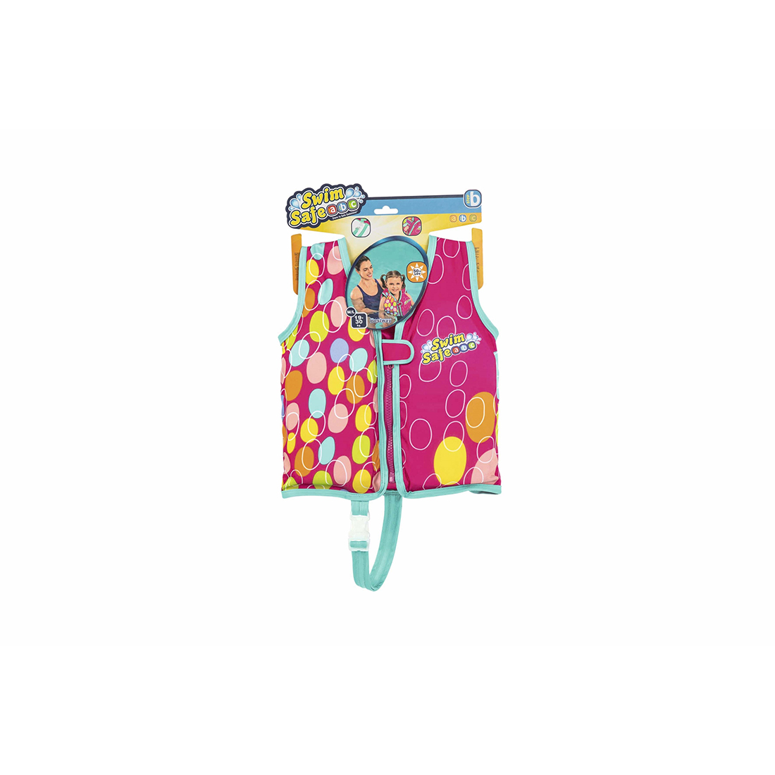 Направьте своего ребенка на путь к успеху в плавании и сделайте его безопасным и комфортным с помощью спасательного жилета для малышей Swim Safe ABC™ AquaStar™! Этот трикотажный спасательный жилет поможет вашему ребенку в возрасте от 3 до 6 лет освоить основы плавания и безопасности в бассейне в рамках программы поэтапного обучения плаванию Bestway® Swim Safe. Мягкий трикотаж и встроенные вставки из пеноматериала обеспечивают ребенку комфорт и плавучесть, когда он учится плавать в этом изделии этапа «B». Кроме того, он имеет 2 регулируемые быстроразъемные пряжки для обеспечения безопасности, а также прочную застежку-молнию с автоматической блокировкой и клапаном для защиты закрытой застежки-молнии. Трикотаж имеет защиту UPF 50+, что помогает задерживать вредные ультрафиолетовые лучи и предотвращает выцветание. Это идеальный следующий шаг в путешествии вашего ребенка по плаванию, чтобы он мог научиться вращать руками и практиковаться в гребле руками, переходя к этапу «C».