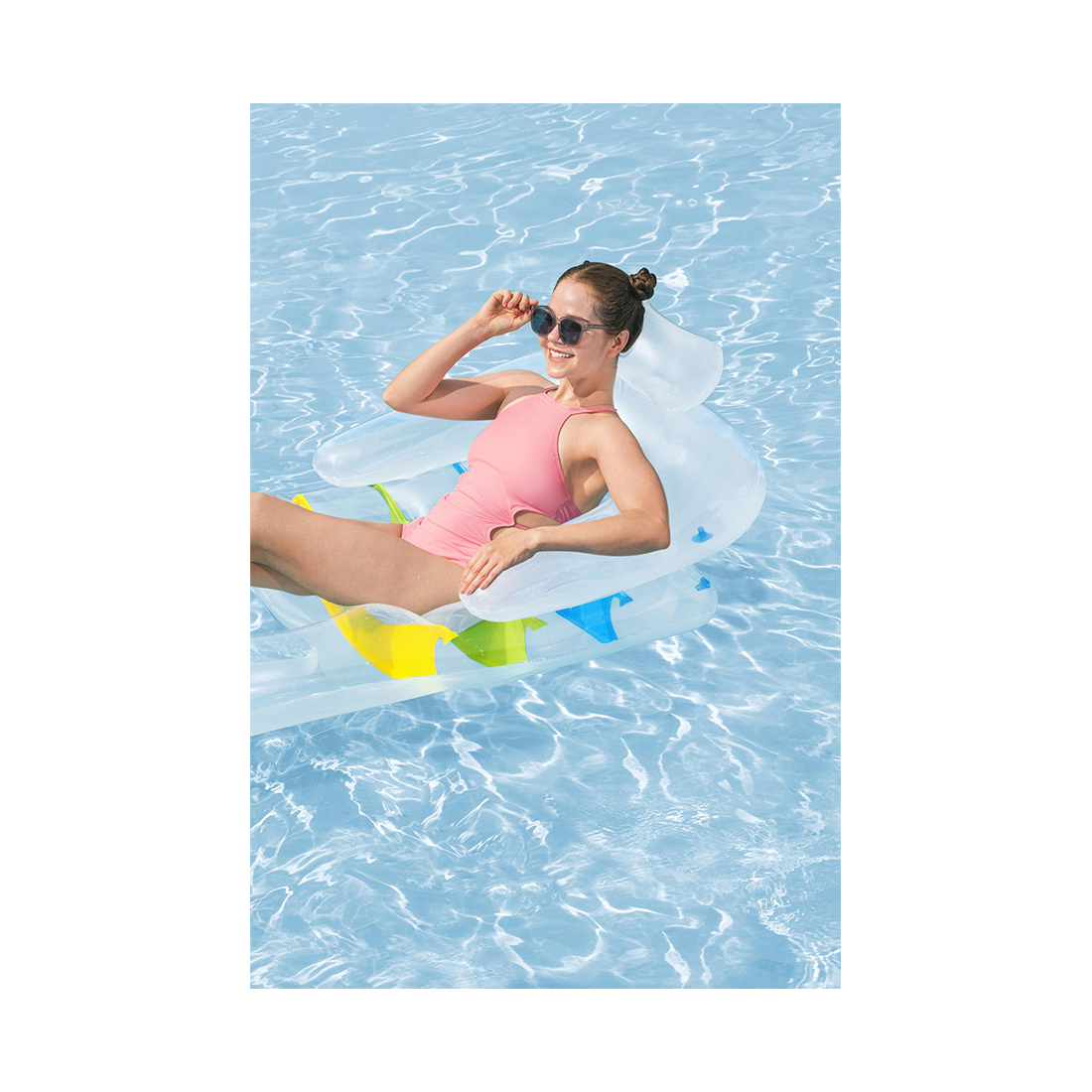 Поплавайте и расслабьтесь в стильном шезлонге для бассейна Bestway® Summer Colors™! Плавающий шезлонг имеет прозрачный верх, раскрывающий яркий дизайн с разноцветными внутренними ребрами жесткости, который создаст вам летнее настроение. Шезлонг имеет надувную спинку для поддержки, а также надувные подлокотники и подголовник для максимального комфорта, поэтому вы можете часами отдыхать в бассейне. Кроме того, вы можете наслаждаться освежающей водой, чтобы остыть, когда захотите, благодаря вырезу в середине шезлонга. Отдыхать на солнце никогда еще не было так весело, как с шезлонгом для бассейна Bestway Summer Colors!