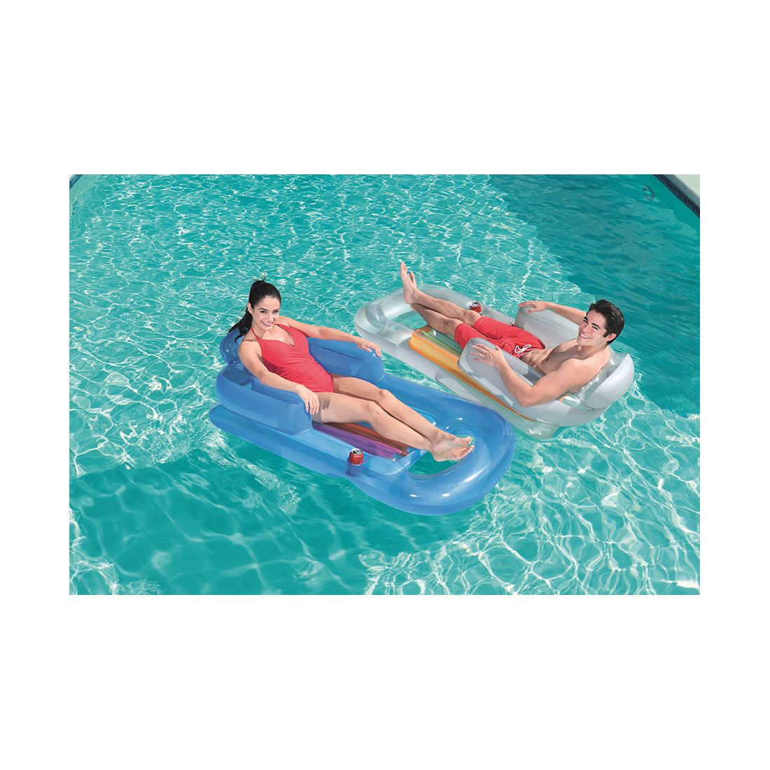 Поплавайте и расслабьтесь в стильном шезлонге для бассейна Bestway® Summer Colors™! Плавающий шезлонг имеет прозрачный цветной верх, раскрывающий яркий дизайн с разноцветными внутренними ребрами жесткости (I-beam), который создаст вам летнее настроение. Шезлонг имеет подстаканник для вашего любимого напитка, надувную спинку для поддержки, а также надувные подлокотники и подголовник для максимального комфорта, поэтому вы можете часами отдыхать в бассейне. Кроме того, вы можете окунуть в воду ноги и наслаждаться освежающей водой, чтобы остыть, когда захотите, благодаря вырезу в середине шезлонга. Отдыхать на солнце никогда еще не было так весело, как с шезлонгом для бассейна Bestway Summer Colors!