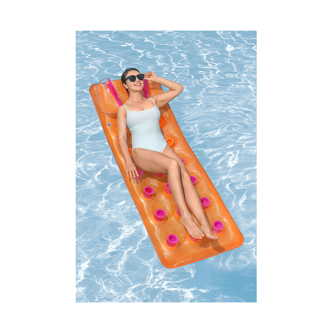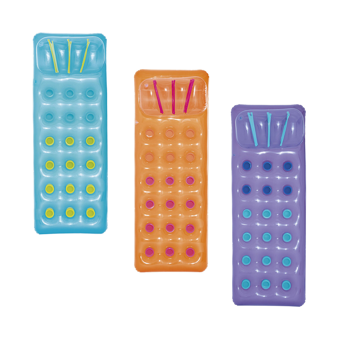 Плавайте и отдыхайте на стильном люксовом надувном матрасе для бассейна Bestway® Summer Colors™. Надувной матрас для бассейна имеет цветной прозрачный верх, под которым видны ярко окрашенные внутренние карманы. Карманы дают дополнительный всплеск цвета, а также сохраняют прохладу и обеспечивают дополнительную поддержку во время плавания. Люксовый надувной матрас для бассейна Summer Colors имеет встроенную надувную подушку с внутренними ребрами жесткости (I-beam), благодаря которой ваша голова будет приподнята и удобно поддерживаться в любое время. Отбросьте свои заботы и наполните дни дополнительным солнечным светом и сезоном брызг. Отдыхать на солнце никогда еще не было так весело, как с люксовым надувным матрасом для бассейна Bestway Summer Colors!