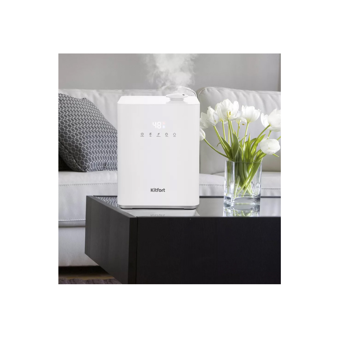 Ультразвуковой увлажнитель воздуха Kitfort KT-2809 увлажняет воздух в помещении и ионизирует его, создавая хороший микроклимат для проживания людей. Может использоваться в помещениях и квартирах, площадь которых не превышает 15–20 м².