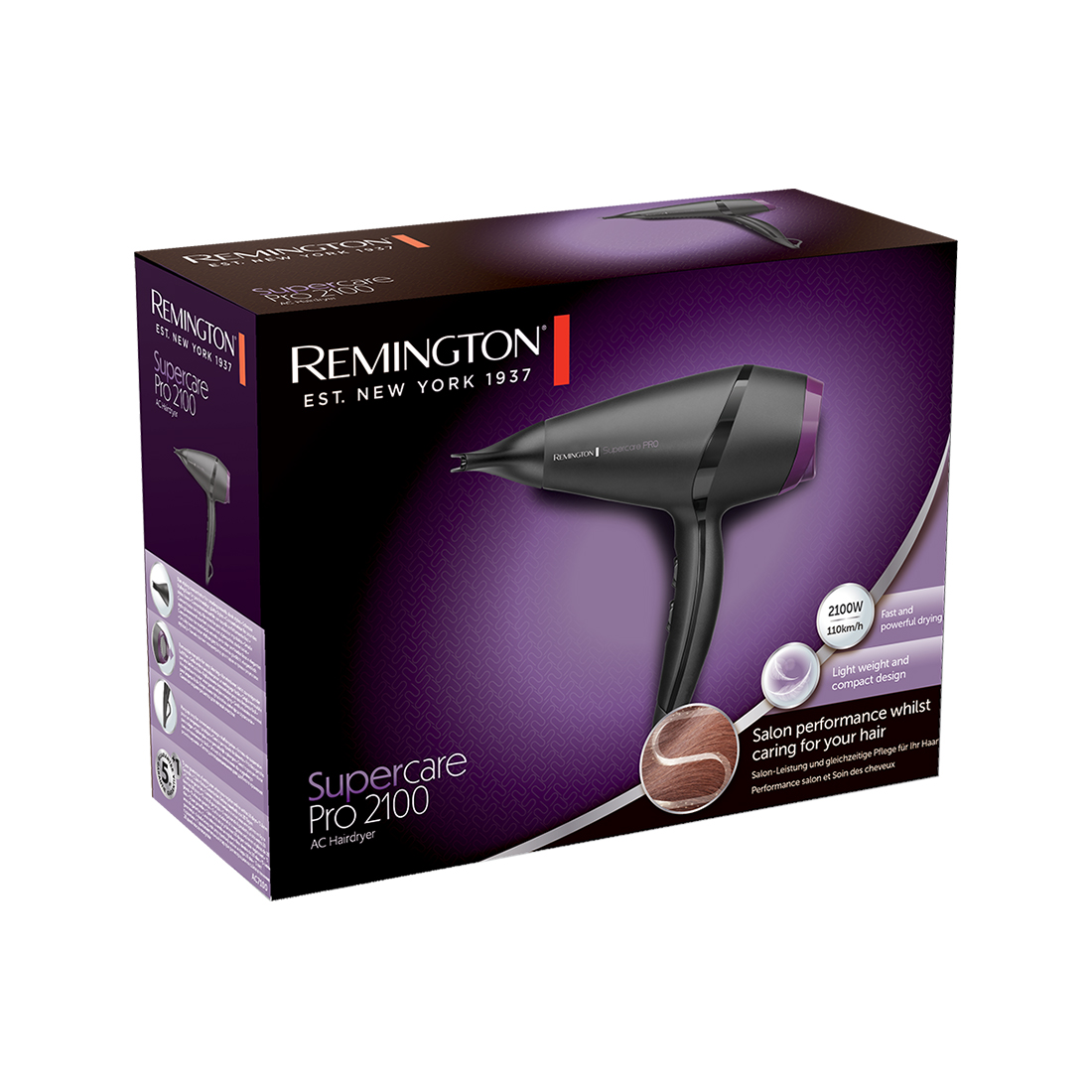 Хотите наслаждаться салонным эффектом укладки, при этом заботясь о своих волосах? Фен REMINGTON AC7100 AC обеспечивает быструю и эффективную сушку волос благодаря долговечному двигателю переменного тока мощностью 2100 Вт. Режим работы Supercare обеспечивает быструю сушку при бережном нагреве. Корпус фена легкий и компактный.