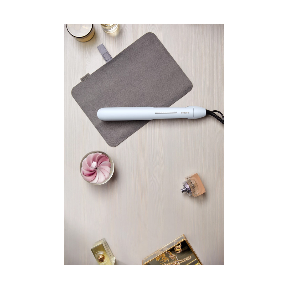 Выпрямитель волос Philips 5000 Series BHS520/00 обеспечивает профессиональное выпрямление и бережный уход за волосами. Он сочетает в себе технологии ThermoShield, двойную ионизацию и керамические пластины с аргановым маслом, позволяя создавать гладкие пряди, волны и лёгкие кудри без повреждений.