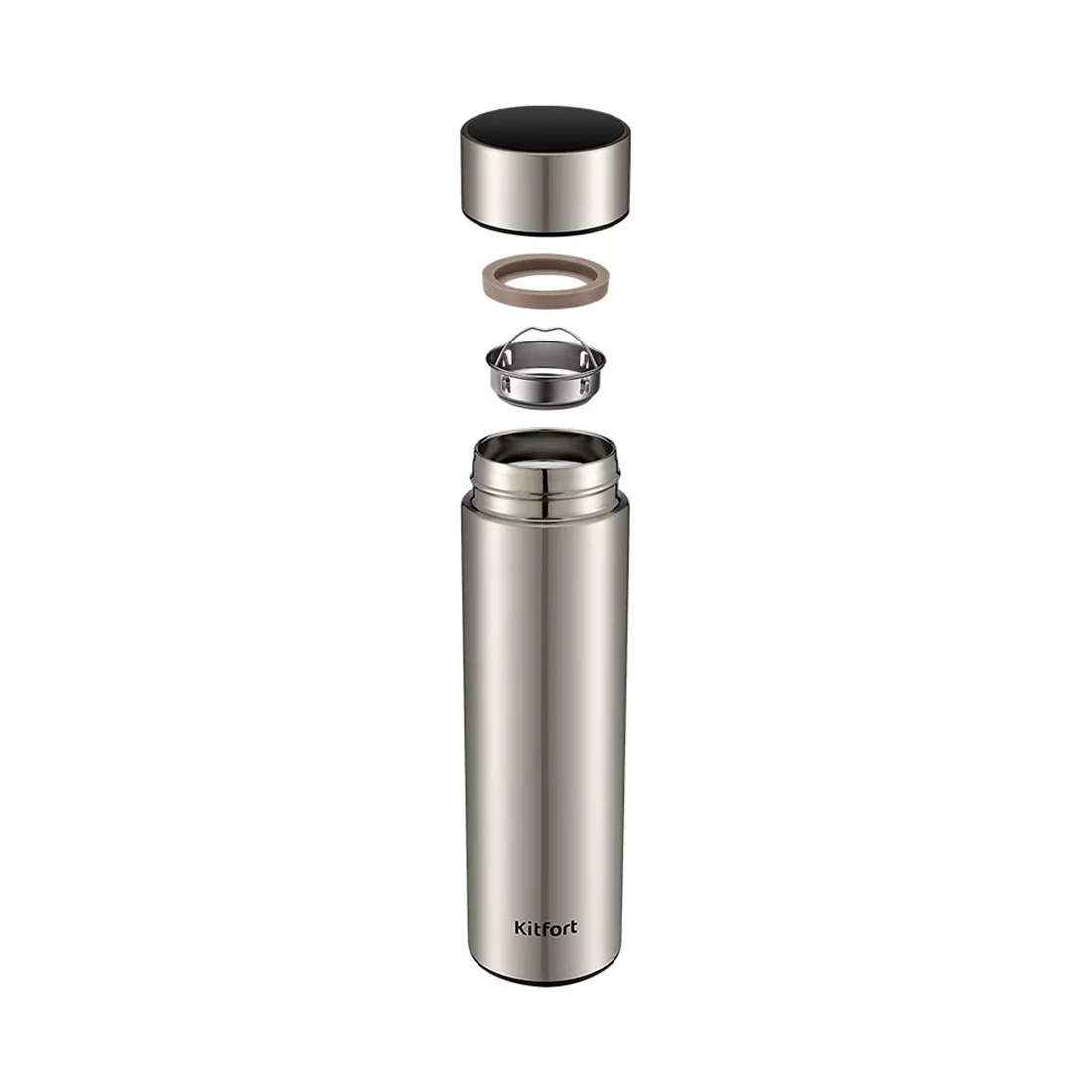 Лучше всего сохраняют тепло термосы с двойными стенками и вакуумной полостью, как модель КТ-1221. Также двойные стенки уберегают ваши руки от ожогов. Термос предназначен для сохранения низкой и высокой температуры напитков на 10-12 ч.