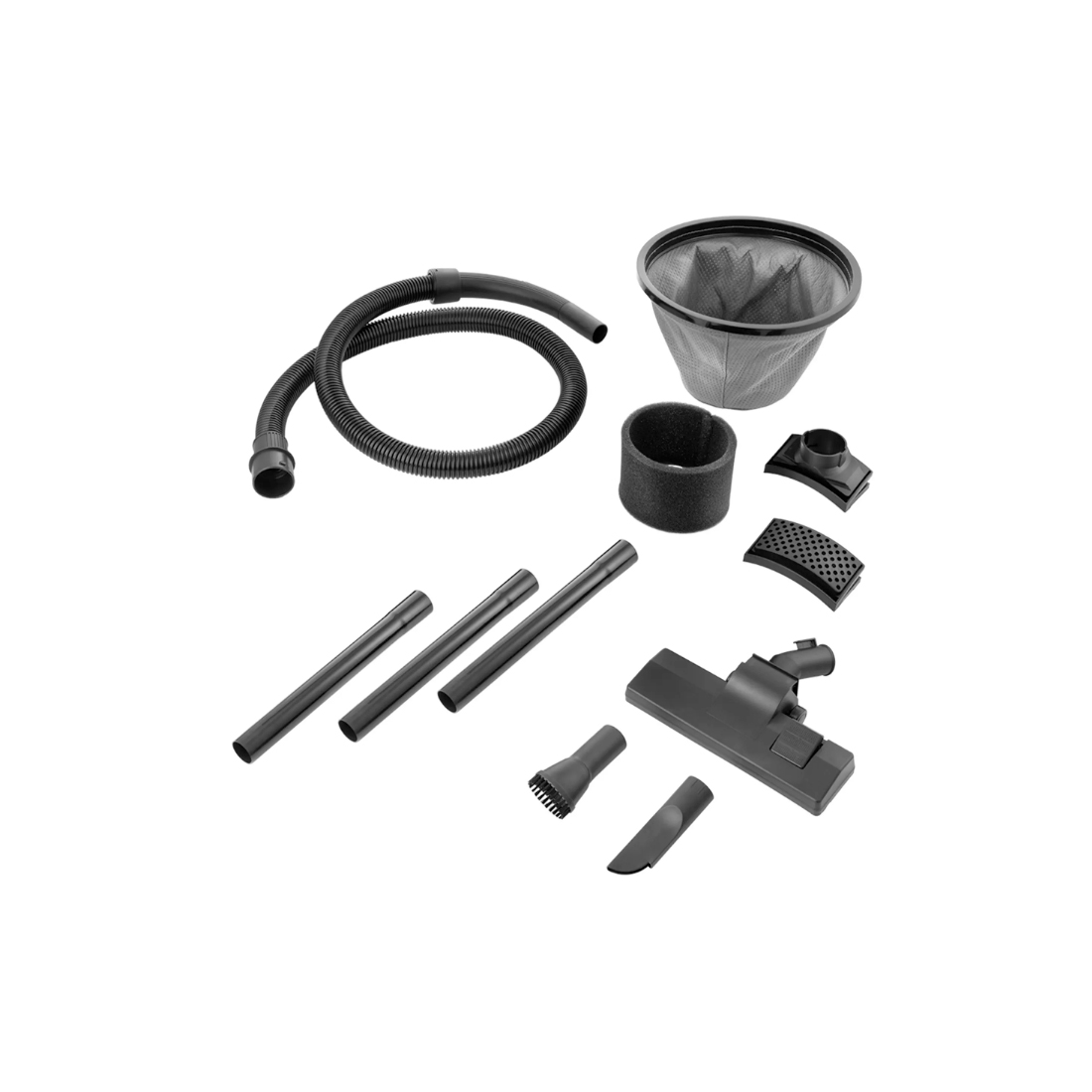 В комплекте идут все стандартные аксессуары: гибкий шланг, удлинительные трубки, щетка для пола с переключателем пол/ковер, насадки.