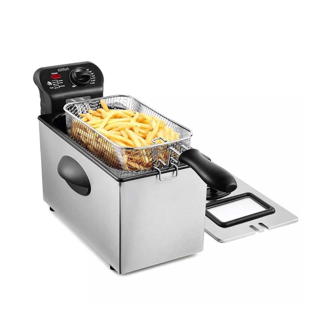 Фритюрница Kitfort КТ-2023 серебристого цвета обладает массой достоинств, поэтому может использоваться и на домашней кухне, и в общепите. Модель обладает мощностью 2180 Вт и чашей для масла объемом 3.3 л.