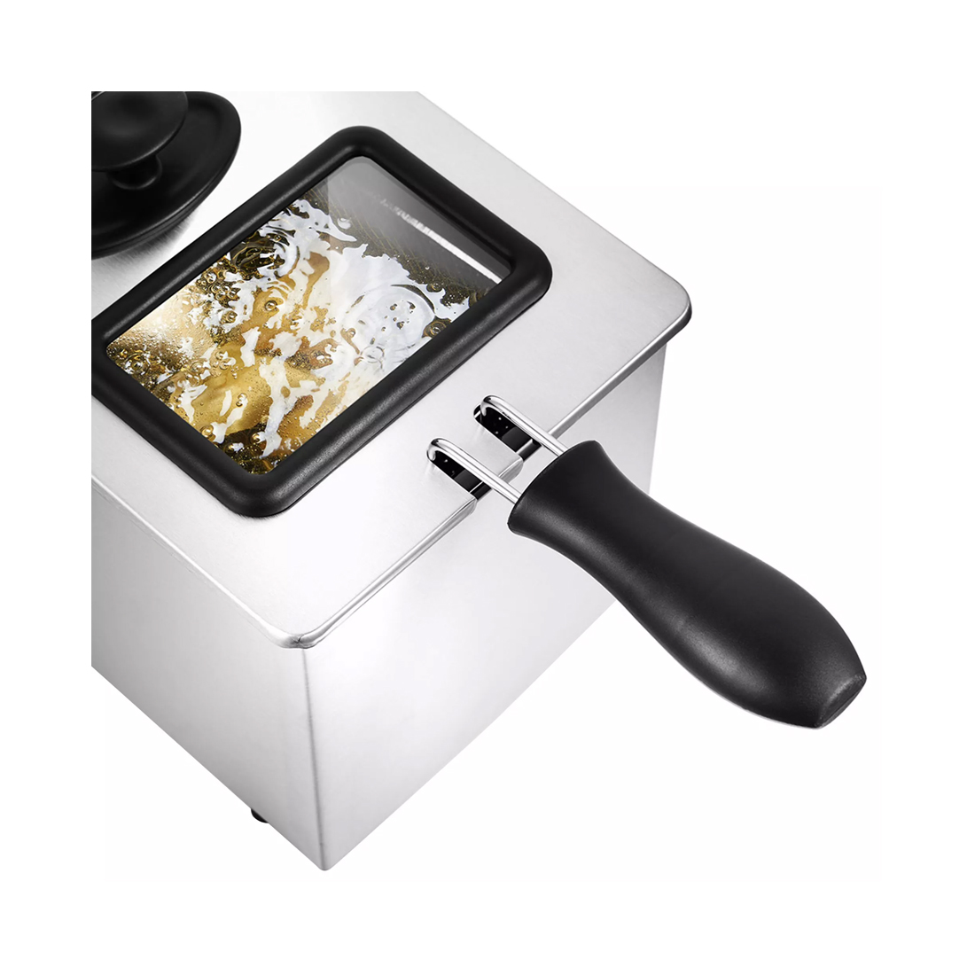 Ненагревающийся корпус выполнен из нержавеющей стали, поэтому отличается высокой прочностью и независимостью перед механическими воздействиями. Модель обладает съемными чашей и крышкой, поэтому проста в очистке. Для того чтобы готовить под закрытой крышкой, в корпусе предусмотрено смотровое окно. Фритюрница Kitfort КТ-2023 оснащена регулятором температуры.