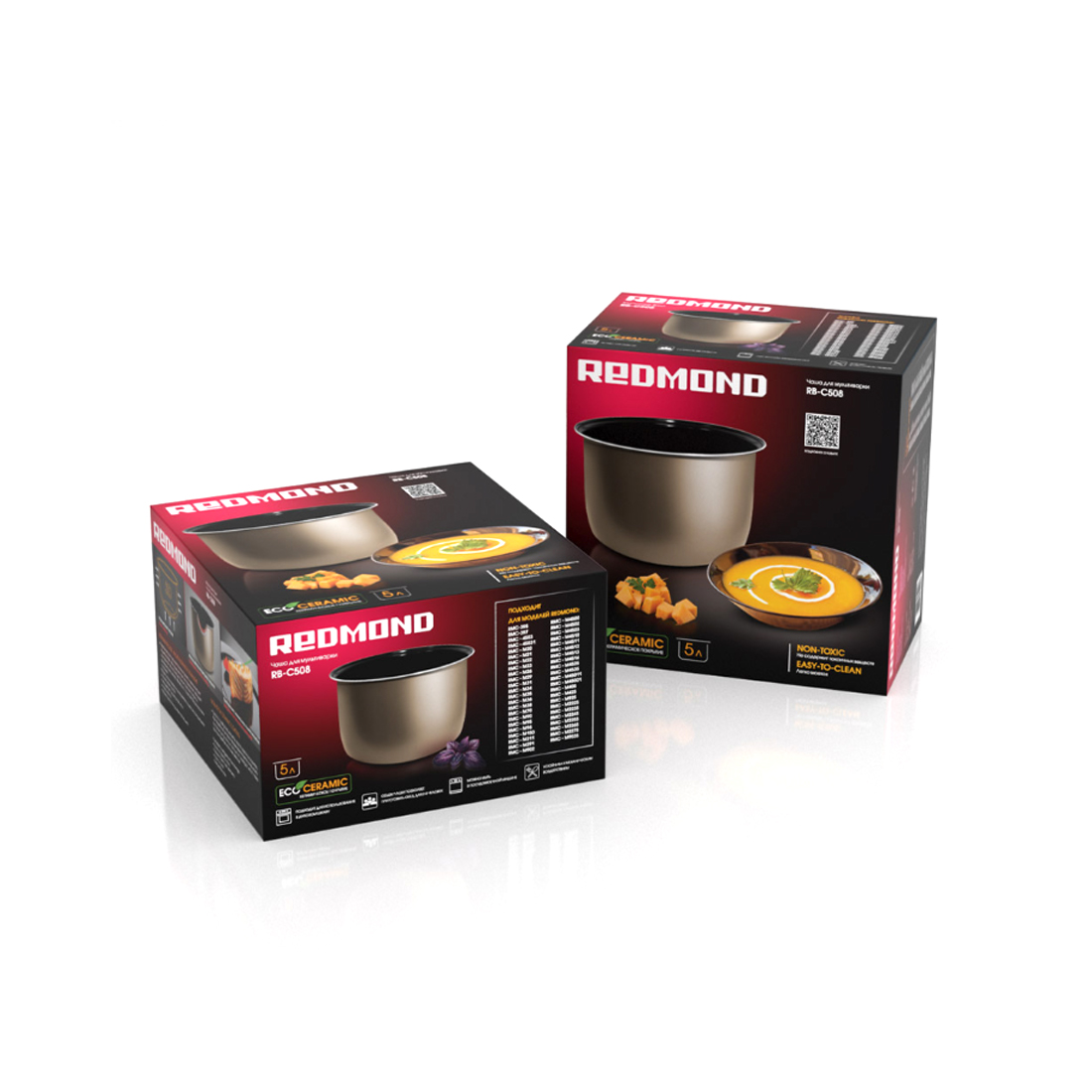 Чаша с керамическим покрытием для мультиварки REDMOND RB-C508 – новая экологичная модель объёмом 5 литров с высокотехнологичной многослойной структурой, специально разработанная для инновационных мультиварок REDMOND.