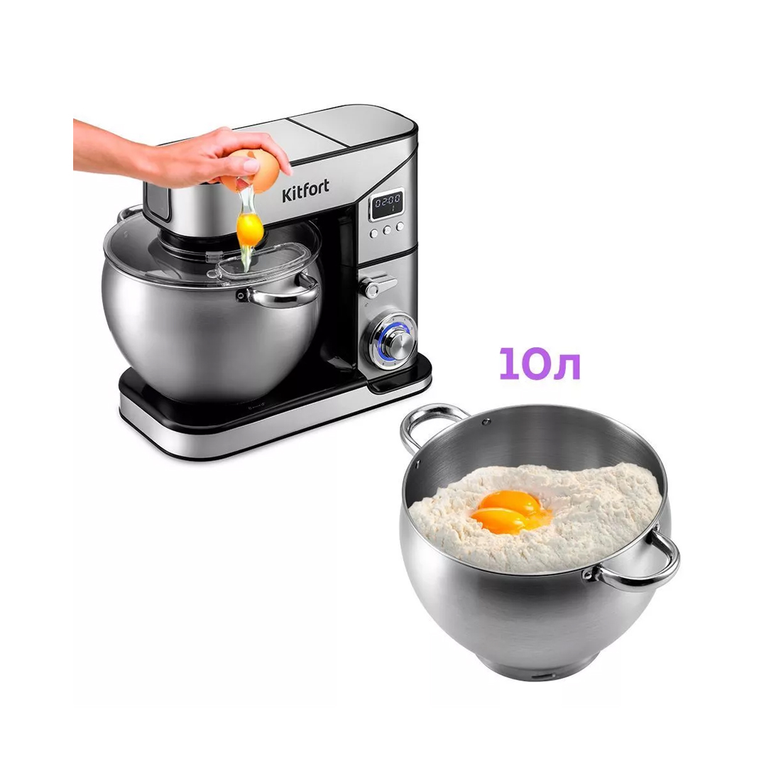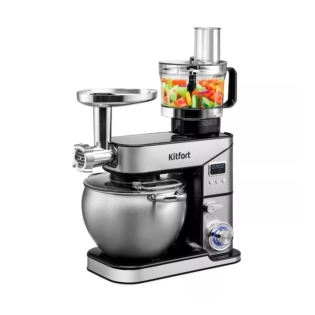 Многофункциональный и мощный планетарный миксер КТ-3413 поможет вам смешать ингредиенты, взбить яйца, картофельное пюре, соус, замесить тесто, приготовить фарш, смешать ледяной коктейль или смузи, нашинковать овощи и фрукты, выжать сок из цитрусовых!