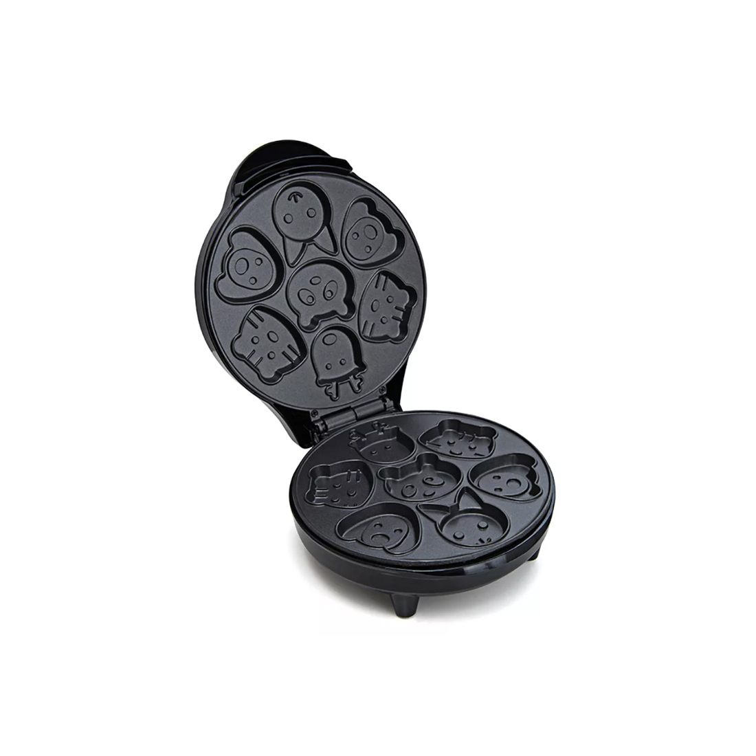 Корпус выполнен из нержавеющей стали, а формы для выпечки покрыты антипригарным покрытием.