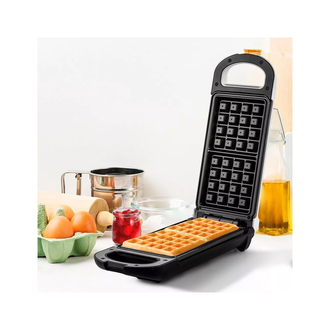 Зажим может использоваться как для идеального приготовления вафель, так и для удобного хранения вафельницы. Противоскользящие ножки не дают прибору скользить по столу во время готовки.