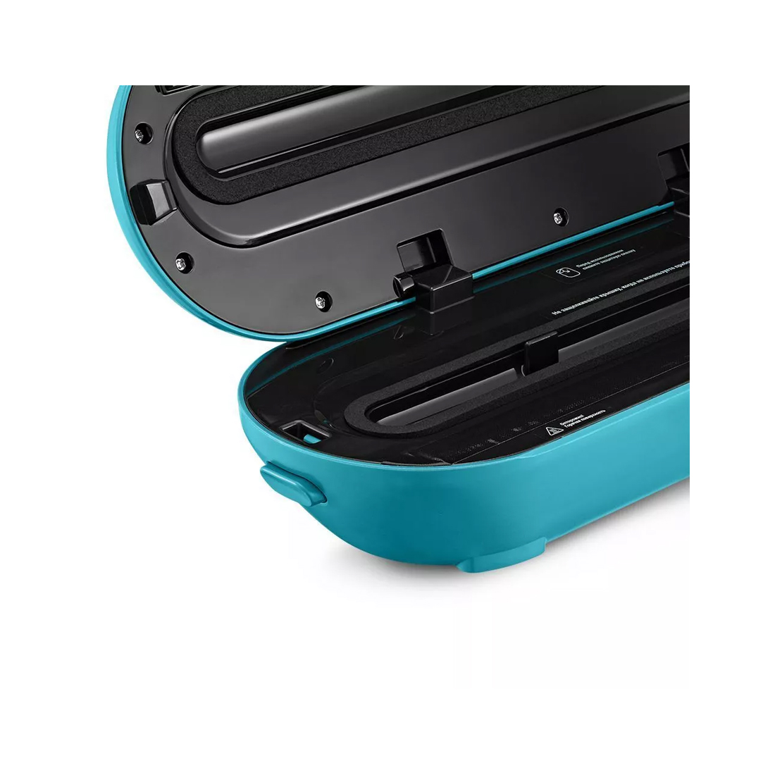 Для обеспечения надёжности при выкачивании воздуха, вакууматор плотно закрывается. Чтобы открыть устройство, нажмите одновременно боковые кнопки прибора, которые закрепляют положение крышки при выкачивании воздуха.