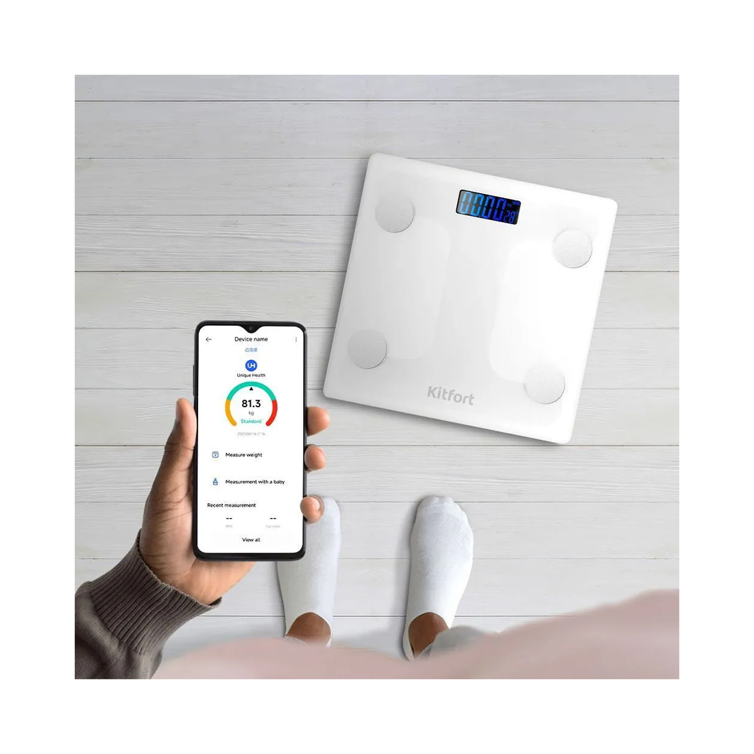 Весы КТ-845 представляют современное поколение «умных» весов, поскольку их можно подключить к приложению ОКОК International, включив передачу данных через Bluetooth. Приложение выводит на экран телефона разные параметры биоимпедансного анализа.