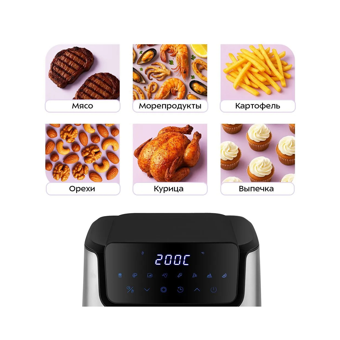 8 автоматических программ позволяют использовать готовые шаблоны настроек, разработанные специально под конкретные блюда, поэтому вам не нужно контролировать процесс приготовления самостоятельно. На дисплее отображаются температура и время приготовления.