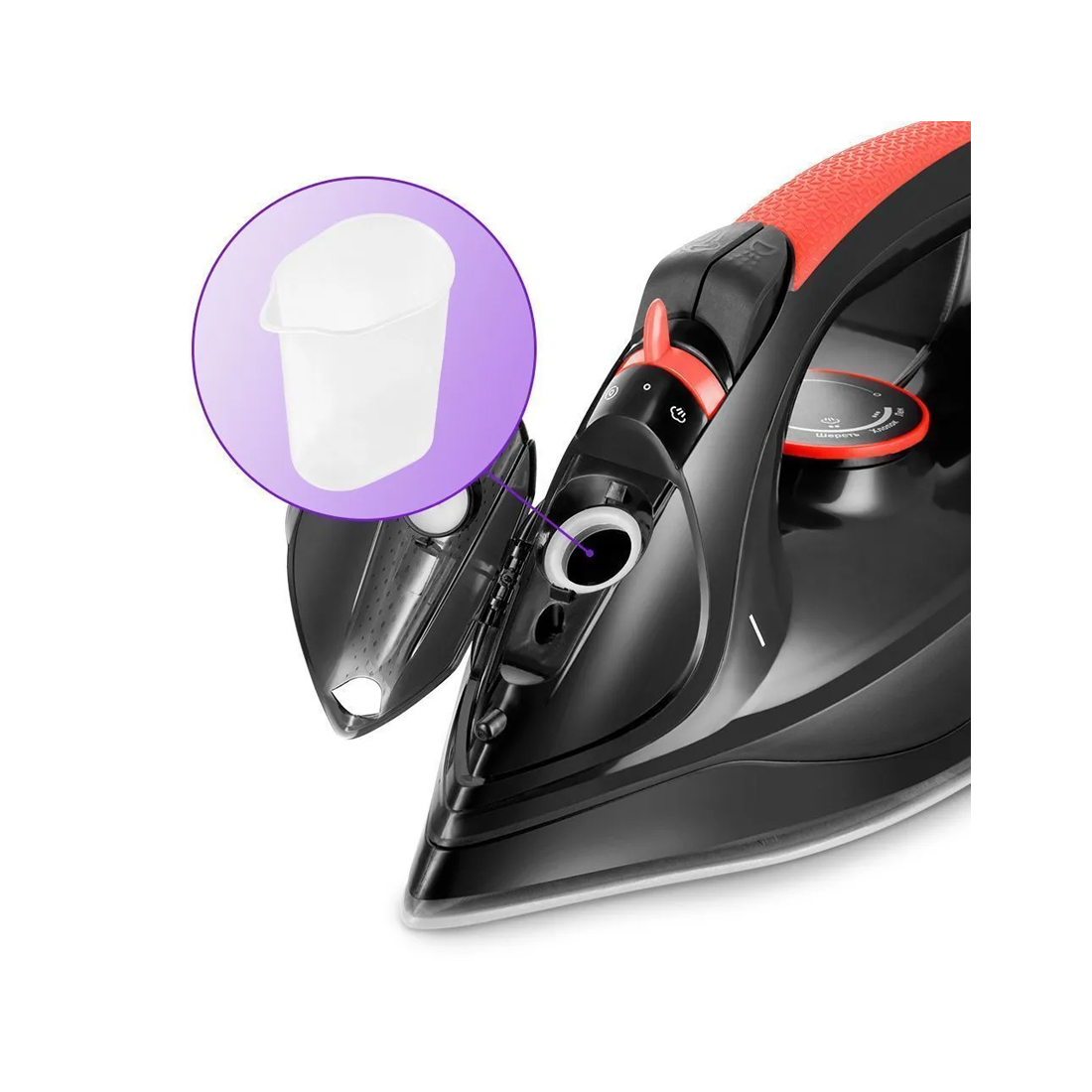 В комплекте с утюгом идёт мерный стакан для удобного поплнения резервуара. Советуем заливать дистиллированную или очищенную воду, чтобы предотвратить внутреннее засорение.