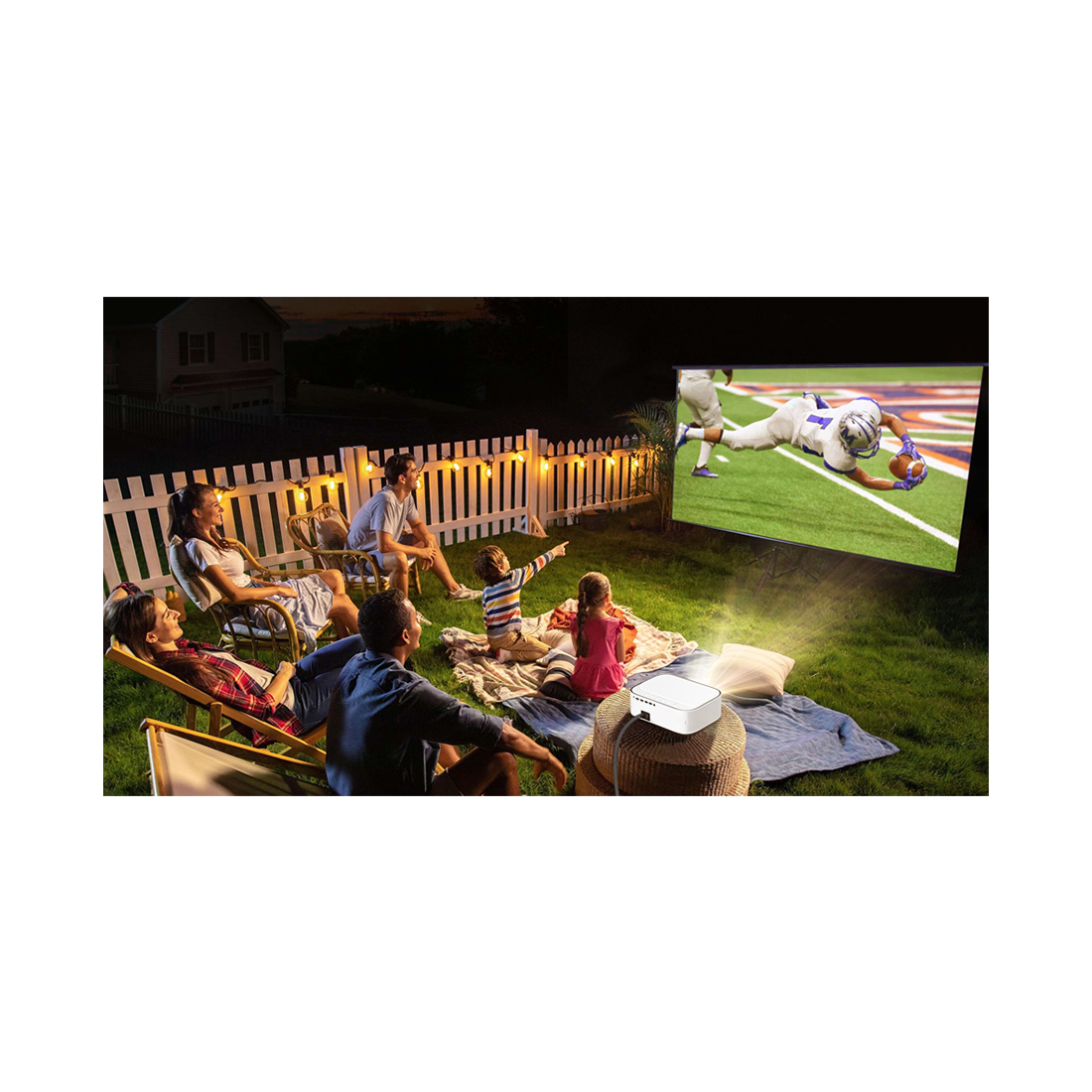 Смарт-проектор на базе 5″ LCD с реальным разрешением 1920×1080, яркостью 950 ANSI лм и долговечным LED-источником (до 30 000 ч). Поддерживает автофокус, всенаправленную автокоррекцию трапеции, ручную угловую коррекцию, электронный зум 65–100%, а также беспроводной экран и предустановленные приложения.