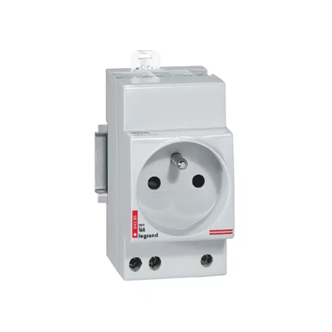 Розетка на DIN-рейку REF. 004280 - модульное устройство для установки в распределительные щиты, предназначенное для подключения бытовых и слаботочных приборов напрямую внутри электрощита. Выполнена во французском стандарте (CEE 7/3, тип F) с заземляющим контактом.