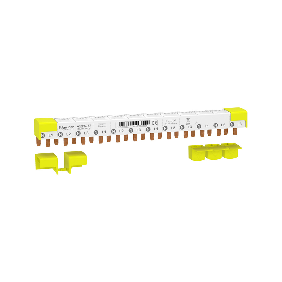 Гребенчатые шинки с шагом 9 мм, 12 модулей, 4 заглушки, предназначены для простого и удобного соединения модульных устройств 1P+N и 3P+N, таких как: iDPN Vigi, iDPN N Arc, iCV40, iDif K