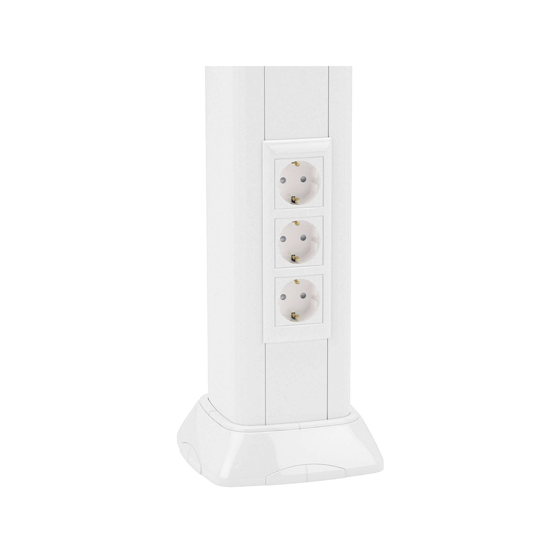 Устанавливается под столами, кафедрами, трибунами и в открытых интерьерах, где требуется безопасный и эстетичный доступ к розеткам.