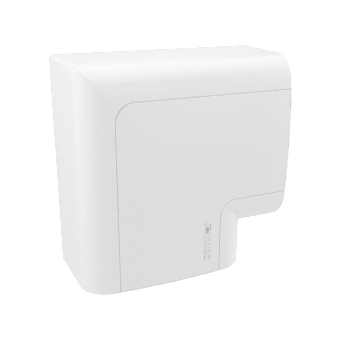 Угол плоский. Назначение: декоративное оформление мест стыковки кабельных коробов. Характеристики: материал накладки – АБС-пластик; материал базы и разделителей – ПП; встроенные перегородки для разделения внутреннего пространства на секции. Комплект поставки: внешняя декоративная накладка; внутренняя база с разделителем секций; инструкция по монтажу. Типоразмер 90х50. Цвет белый