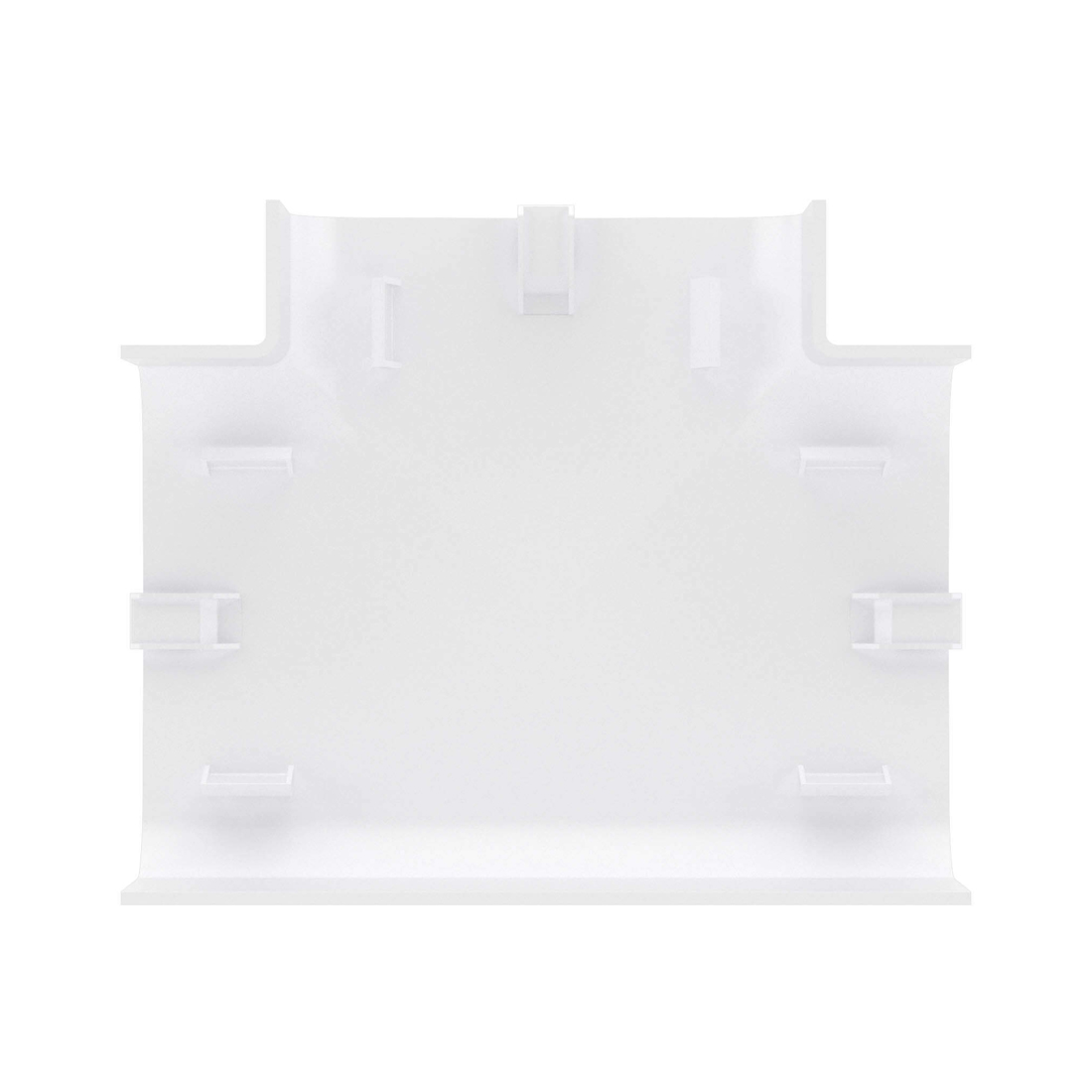 Тройник используется для маскировки мест Т-образных стыков. Аксессуар совместим с кабель-каналами 90х50 мм. Материал: накладка – АБС-пластик; база и разделители – ПП. Цвет - белый