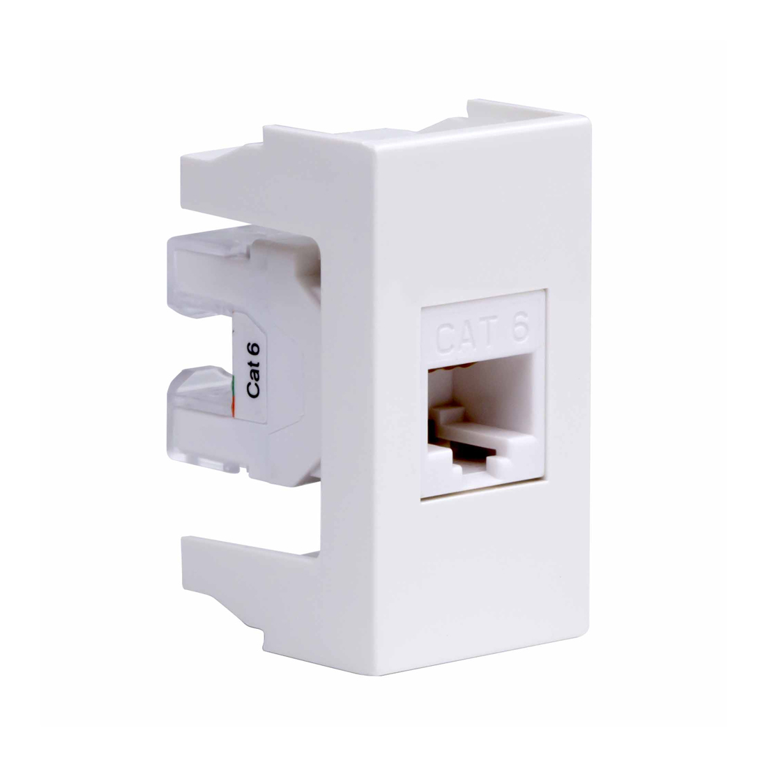 Ком.роз. RJ45 кат.6, 8P8C, Viva, 1мод DKC 45058 белаяКомпьютерная розетка. Назначение: подсоединение кабеля к компьютеру, принтеру и прочей оргтехнике. Характеристики: 8Р8С; комплектуются одномодульным гнездом; для заделки контактов в розетки использовать инструмент типа 110. RJ-45. Категория: 6. Тип гнезда: Keystone. Производитель гнезда: Hyperline. Установочный размер: 45х25. Кол-во модулей: 1. Цвет: белый