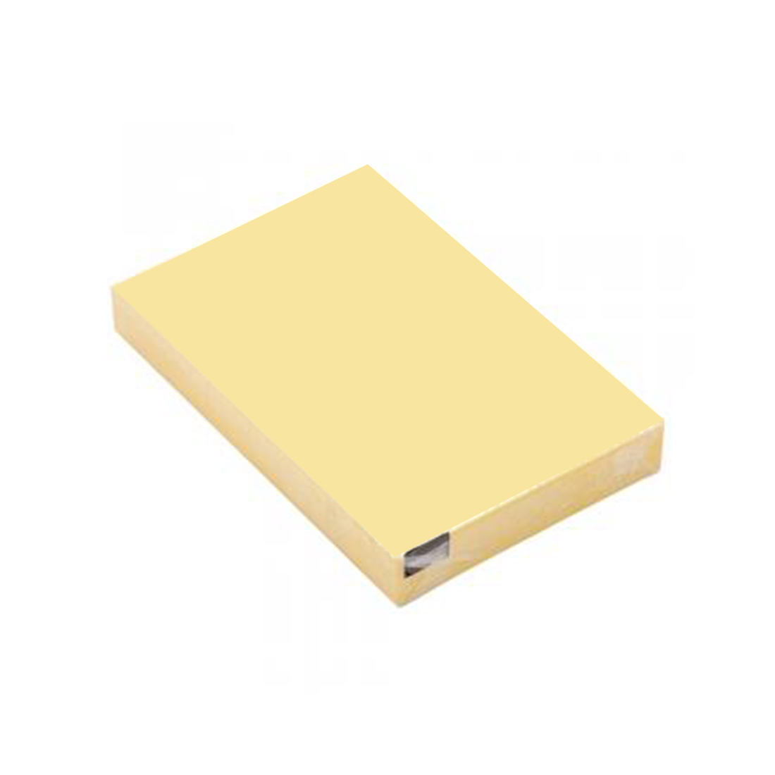 Изготовлен из бумаги плотностью 65 г/м2 с использованием качественного клеевого состава и специальной основы, позволяющей клею полностью оставаться на отрываемом листке.