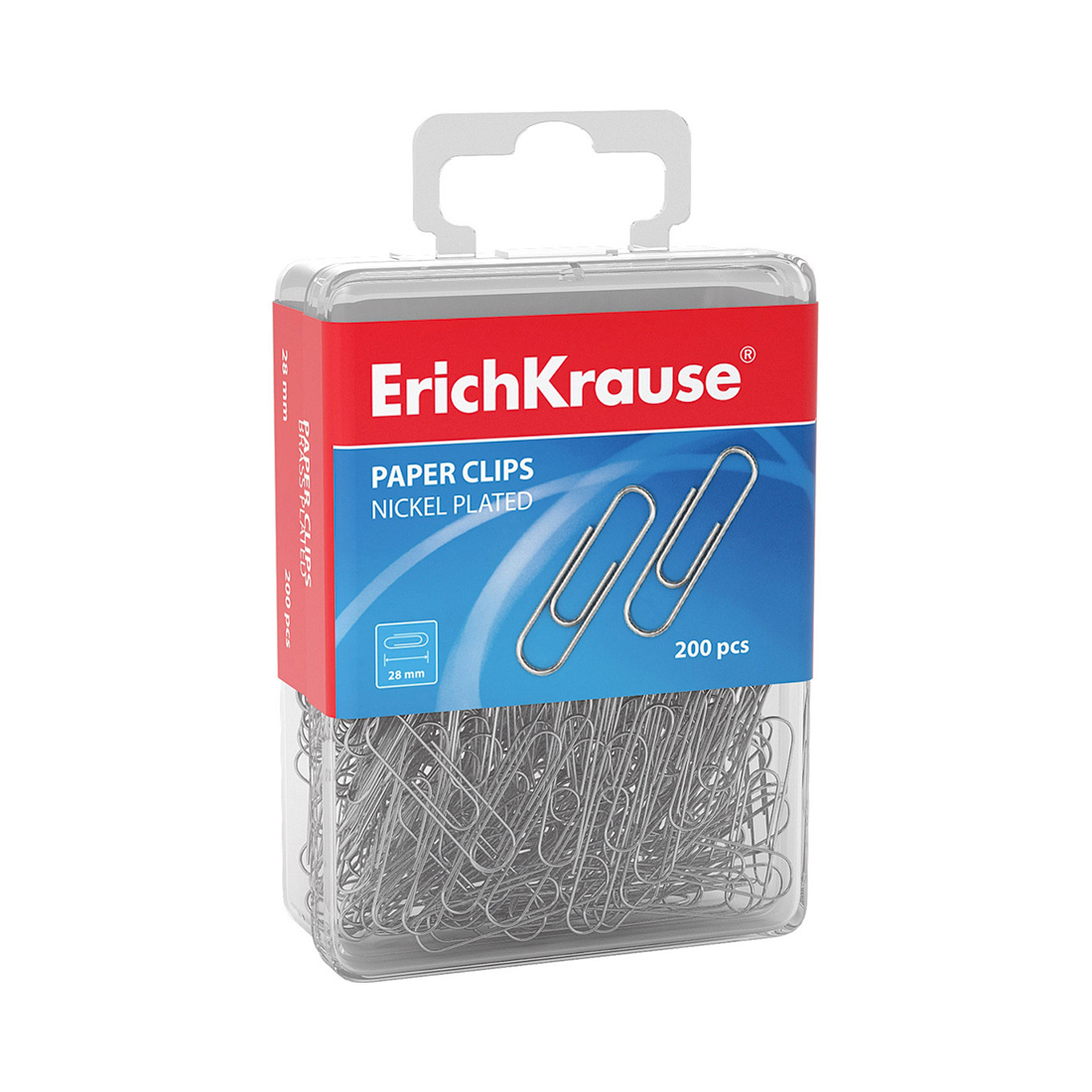 —Скрепки металлические никелированные ErichKrause®, 28мм (пластиковая коробка 200 скрепок)