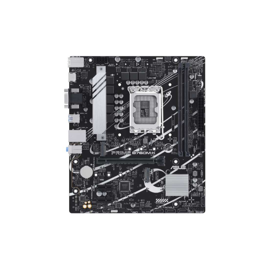 Intel® B760 LGA 1700 mATX motherboard with PCIe 4.0, two PCIe 4.0 M.2 slots, DDR5, Realtek 2.5Gb Ethernet, VGA, HDMI™, SATA 6 Gbps, front USB 3.2 Gen 1, Aura Sync