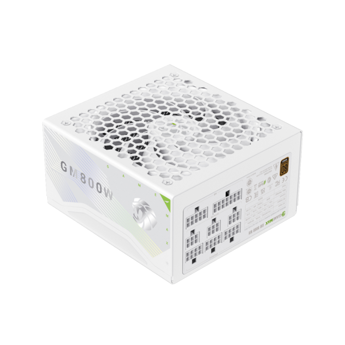 GAMEMAX GM 800W 80+ Bronze Plus эффективный блок питания с интеллектуальным охлаждением, качественными конденсаторами и защитой от электромагнитных помех.