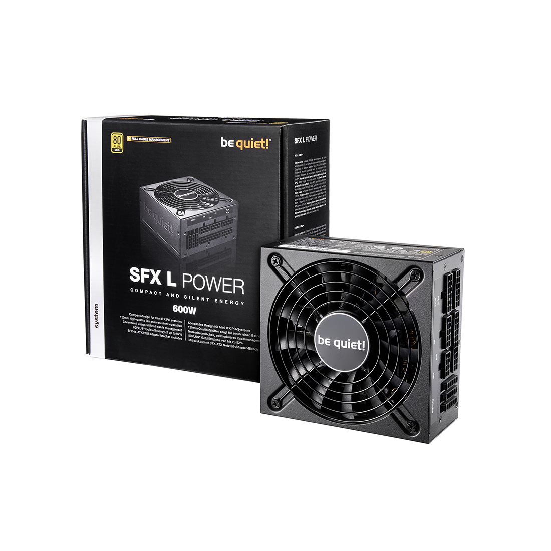 Bequiet! SFX L Power 600W рекомендован для mini ITX и компактных игровых систем. Он выделяется среди подобных устройств отличным сочетанием тишины, характеристик, надежности и эффективности. SFX L Power обеспечивают надежное питание CPU и GPU благодаря стабильной линии 12В, высококачественным японским конденсаторам и инновационным технологиям преобразования энергии LLC, Synchronous Rectifier и DC-to-DC. Четыре разъема PCIe для систем с несколькими видеокартами. Блок питания идеально подходит для пользователей компактных игровых ПК или домашних кинотеатров (HTPC), которым нужен формат SFX с 120мм вентилятором. Эта модель оснащена вентилятором с регулировкой скорости в зависимости от температуры. Использование высокотехнологичного вентилятора и низкий уровень нагрева компонентов делают работу SFX L Power практически бесшумной. SFX L Power 600W имеет сертификацию 80 PLUS Gold с эффективностью до 92% - выдающийся уровень для этого класса блоков питания. Это снижает стоимость энергопотребления и обеспечивает более тихую работу с меньшим уровнем нагрева. Благодаря кронштейну-адаптеру SFX-to-ATX, блок питания универсально подходит для установки как в корпуса с БП формата SFX, так и для более крупных ATX корпусов.
