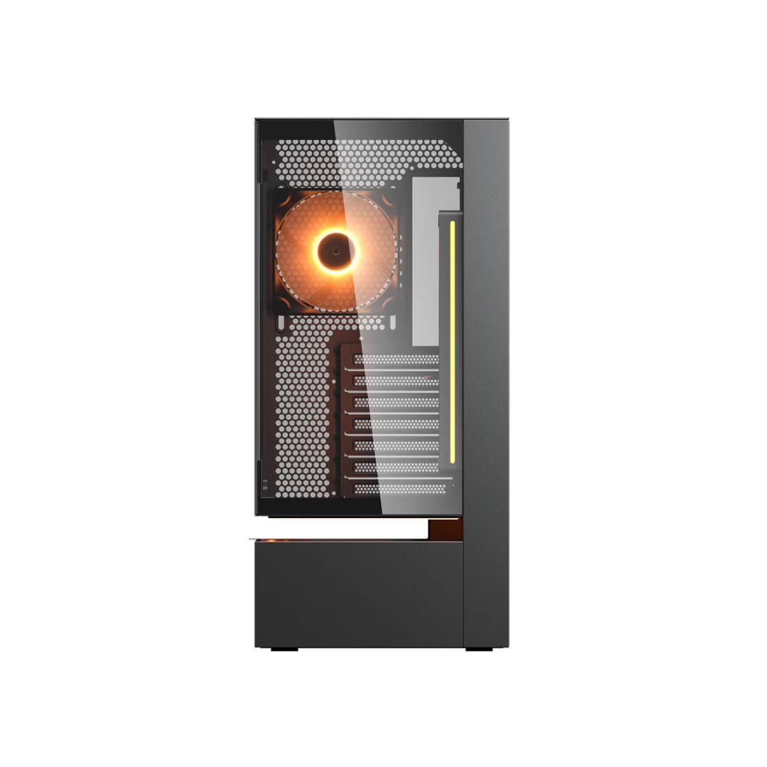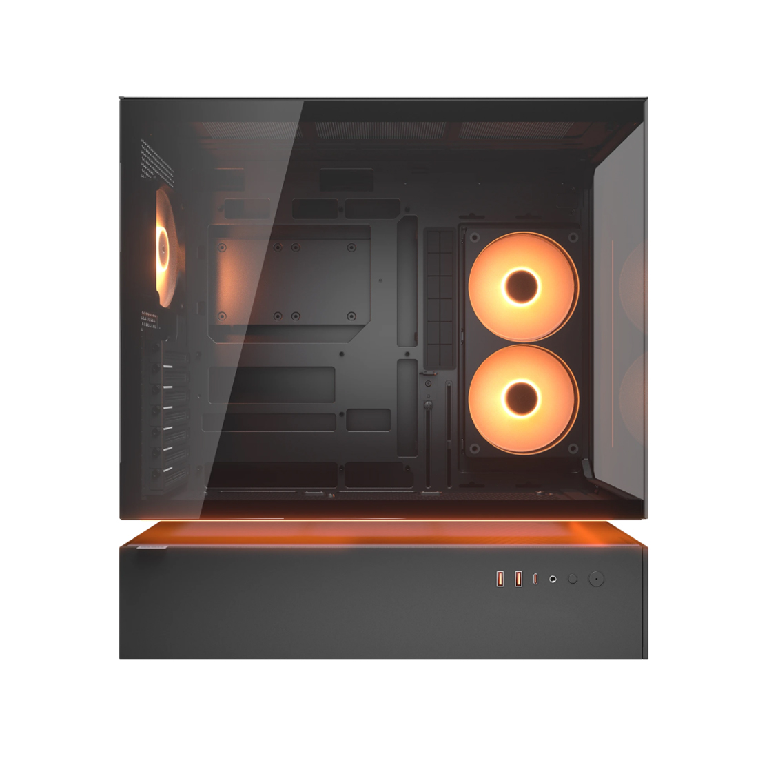 Стальная рама толщиной 1,5 мм усиливает шасси, сохраняя структурную целостность даже при использовании подвесной центральной вентиляции. В результате получается смелая, открытая архитектура, которая остаётся жёсткой, надёжной и готовой к высокопроизводительным сборкам.