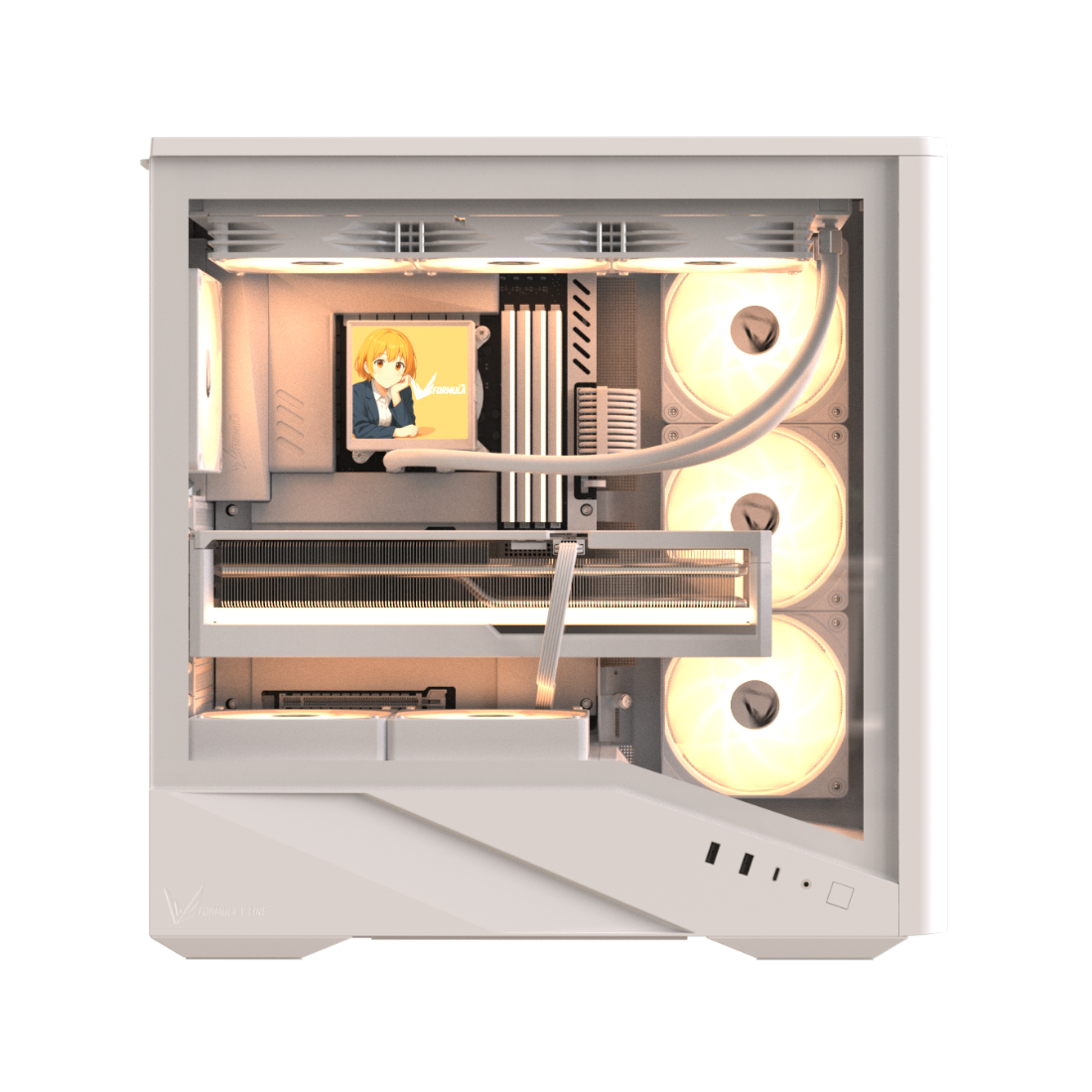 Боковая панель оснащена большой вентиляционной зоной, обеспечивающей дополнительный приток или вытяжку воздуха для боковых вентиляторов и позволяющей нижним вентиляторам забирать больше прохладного воздуха. Такое решение улучшает воздушный поток и общую эффективность охлаждения.