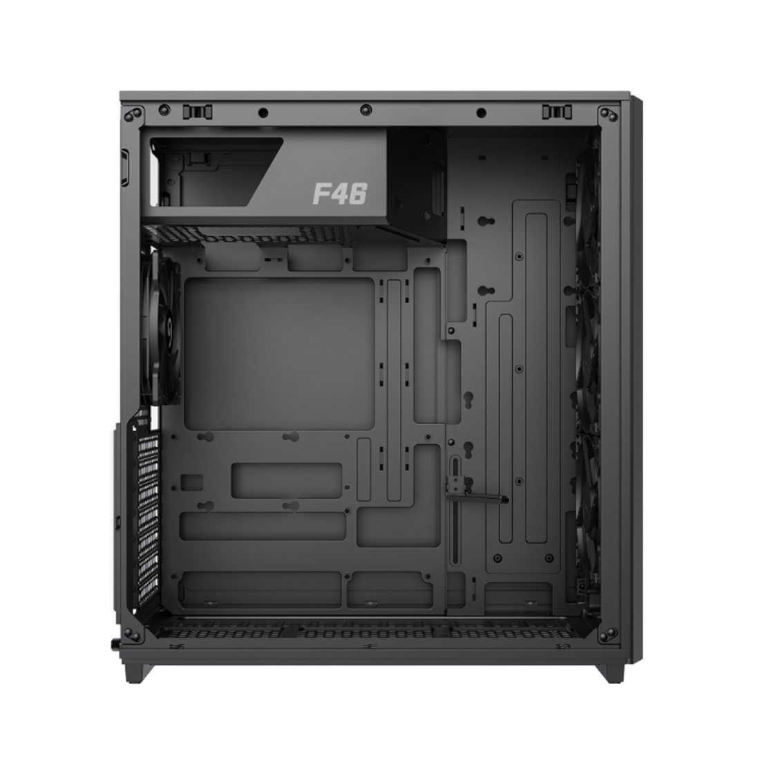 GameMax F46 Dark Black оснащён удобной системой кабель‑менеджмента, которая помогает аккуратно уложить провода и сохранить чистоту внутреннего пространства, улучшая не только внешний вид, но и воздушный поток внутри корпуса. Наличие креплений для накопителей и оптимального размещения интерфейсных панелей делает корпус универсальным решением как для игр, так и для рабочих задач.