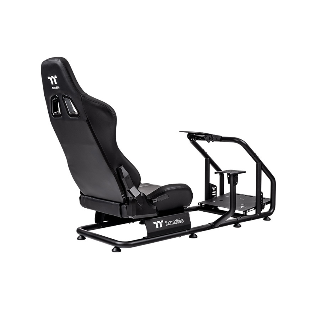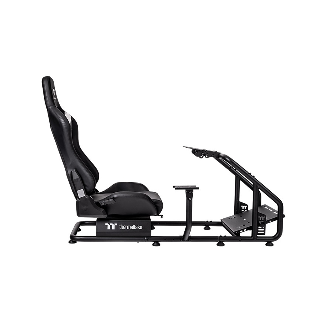 Платформы для руля и педалей также регулируются, что позволяет настроить кабину под индивидуальные предпочтения пользователя. Предусмотрена установка крепления для шифтора с левой или правой стороны. Thermaltake GR300 совместима с популярными рулевыми базами и педальными блоками Logitech, Fanatec, Thrustmaster и других производителей.