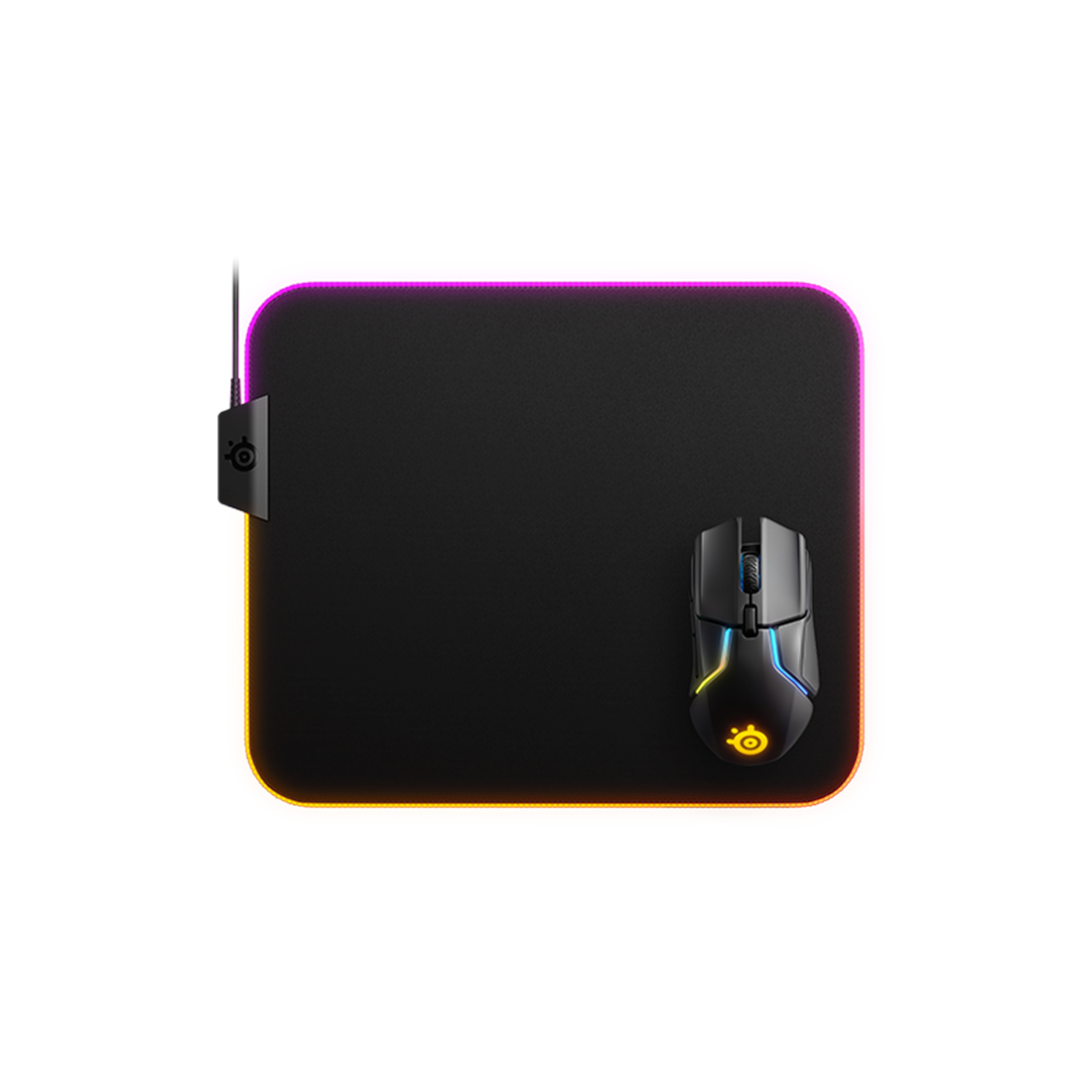 SteelSeries QcK Prism изготовлен из той же микроволоконной ткани, что и прочие модели серии QcK. Его отличительной особенностью и, пожалуй, одним из главных преимуществ, является яркое RGB-свечение, которое отлично дополнит вашу игровую атмосферу.