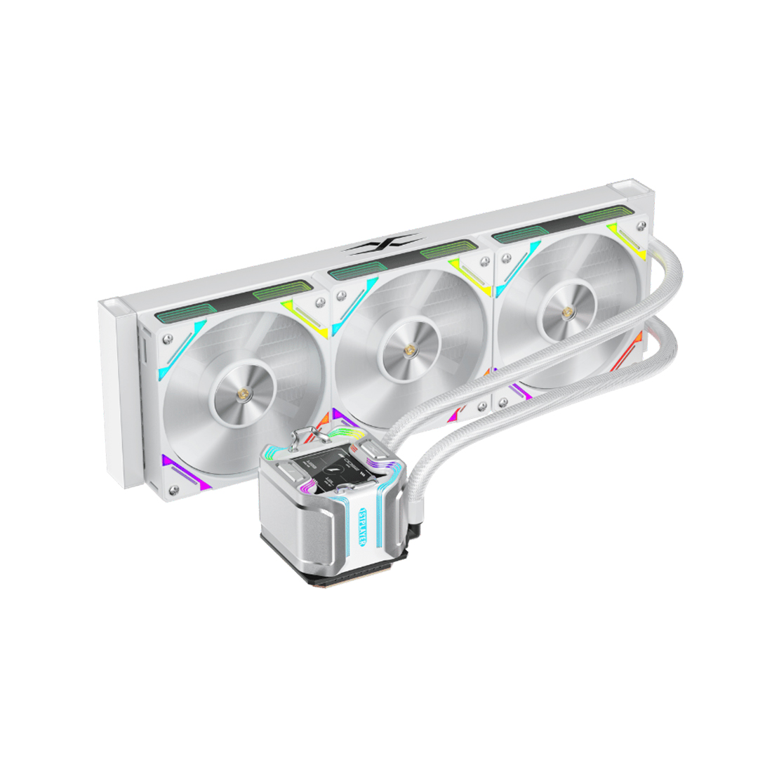 Вентиляторы создают направленный воздушный поток и стабильное давление, что помогает поддерживать низкие температуры под нагрузкой. Скорость вращения регулируется автоматически, благодаря чему система работает тихо. Поддержка ARGB-подсветки позволяет синхронизировать освещение с остальными компонентами.